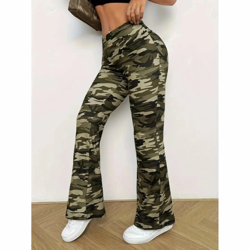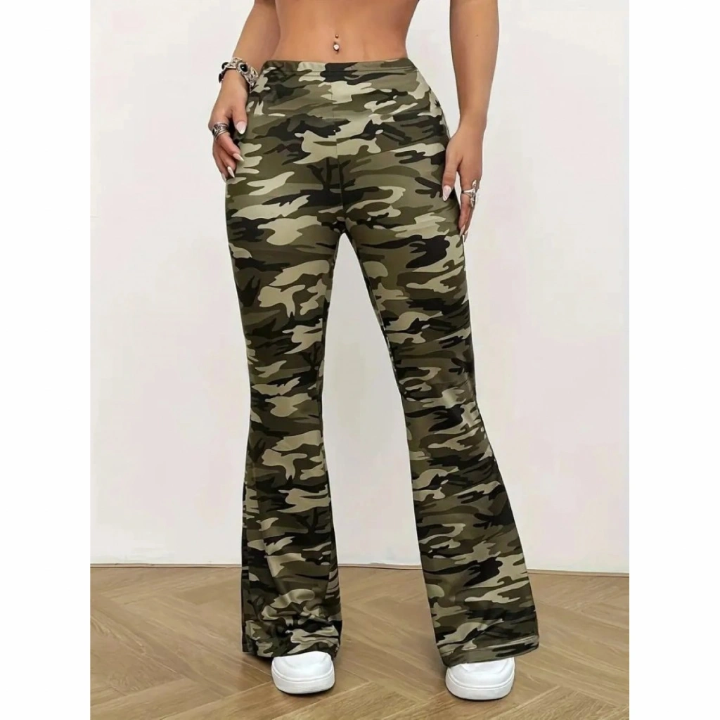 Kadın Yüksek Bel Kamuflaj Desenli Dalgıç Tayt