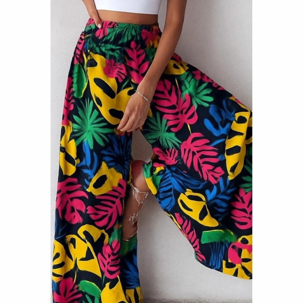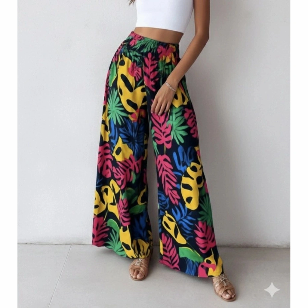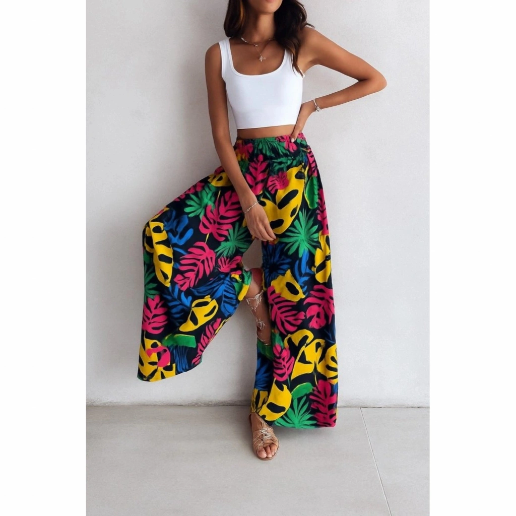 Kadın Yüksek Bel Lastikli Desenli Süprem Pantolon