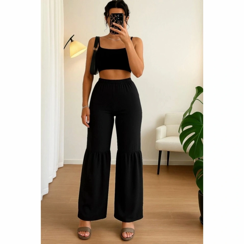 Kadın Yüksek Bel Parça Detay Bol Paça Pantolon