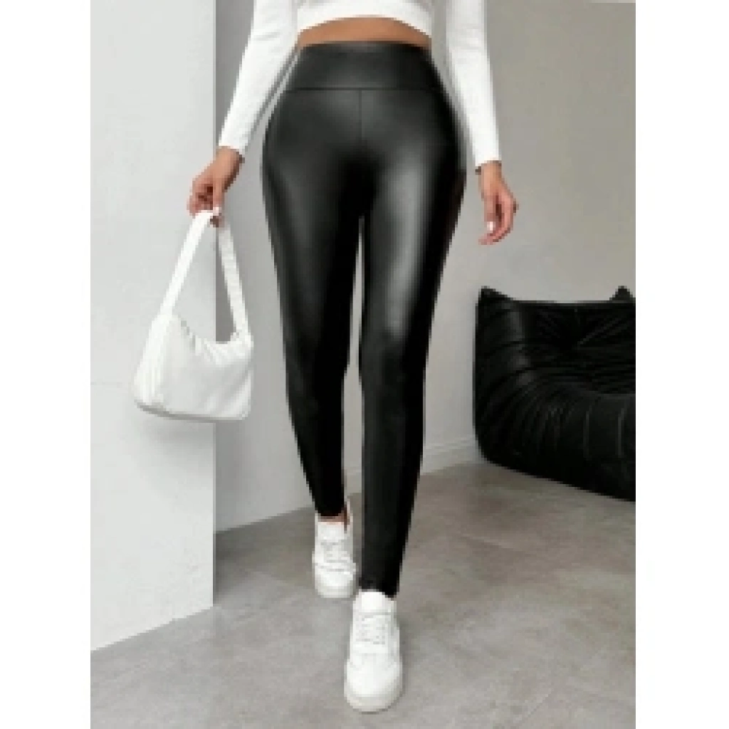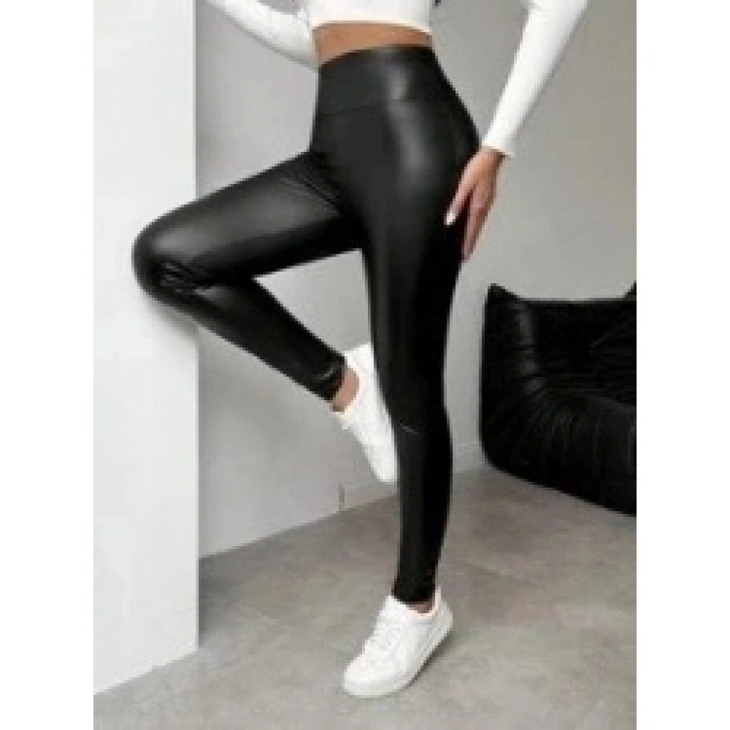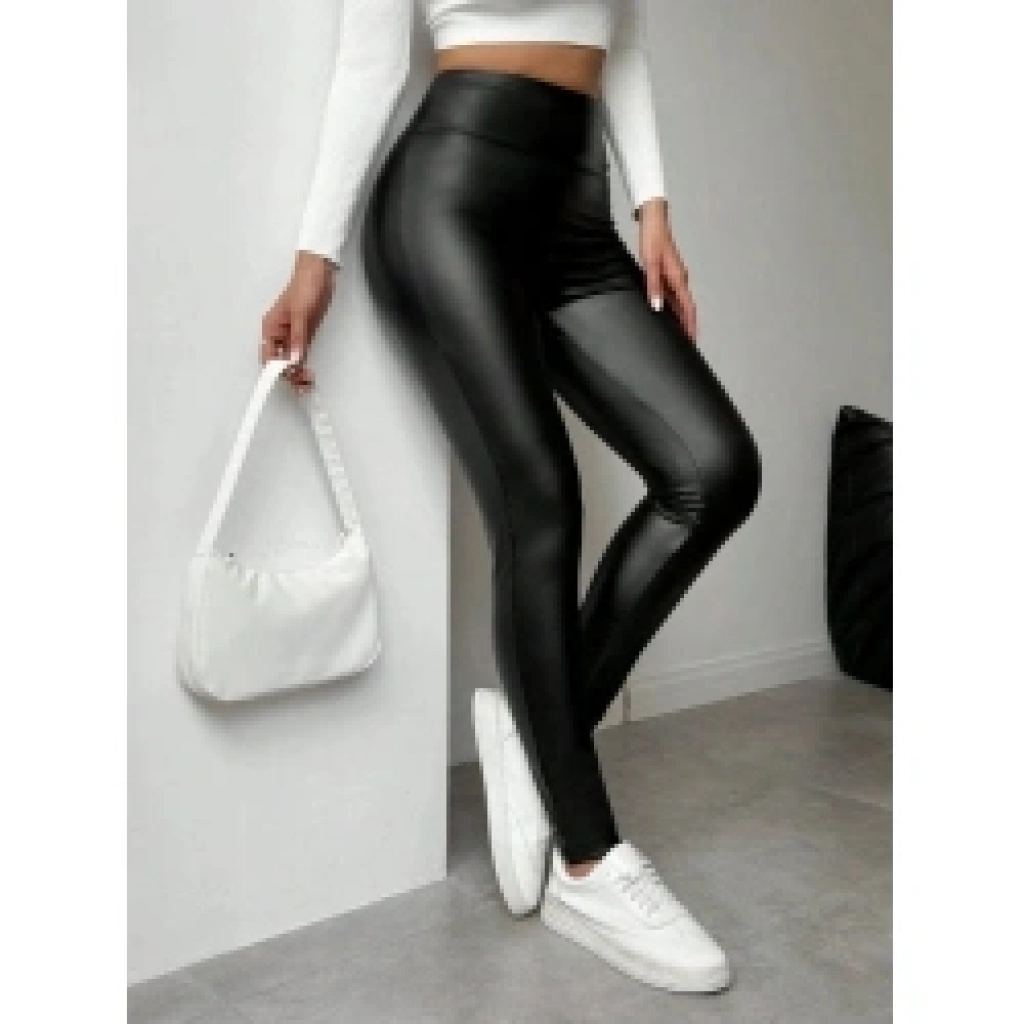 Kadın Yüksek Bel şardonlu Parlak Deri Tayt