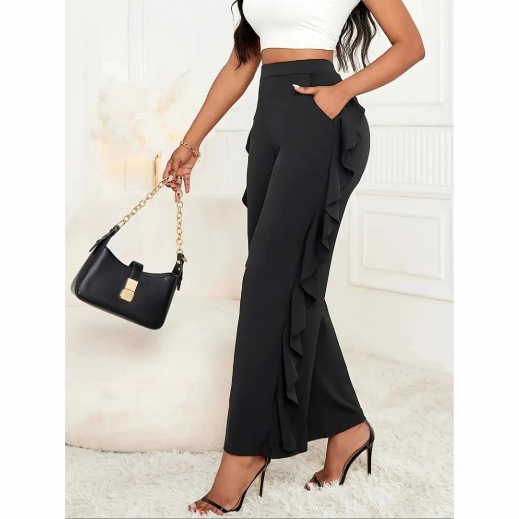 Kadın Yüksek Bel Yanları Volanlı Cepli Sandy Pantolon