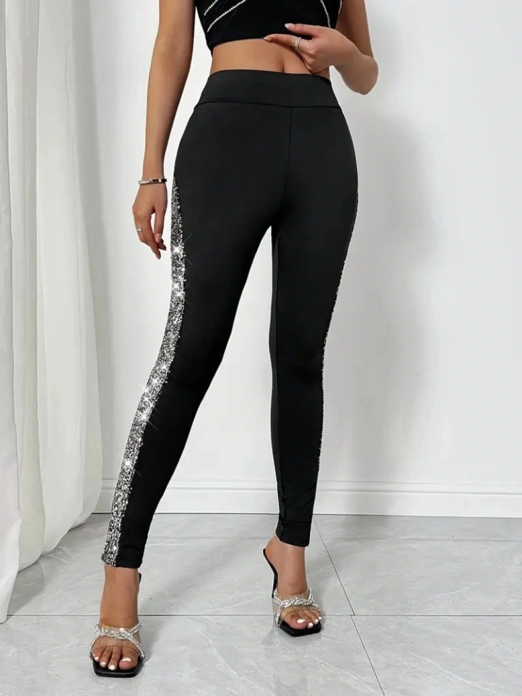 Kadın Yüksek Bel Yarı şerit Pul Payetli Dalgıç Tayt