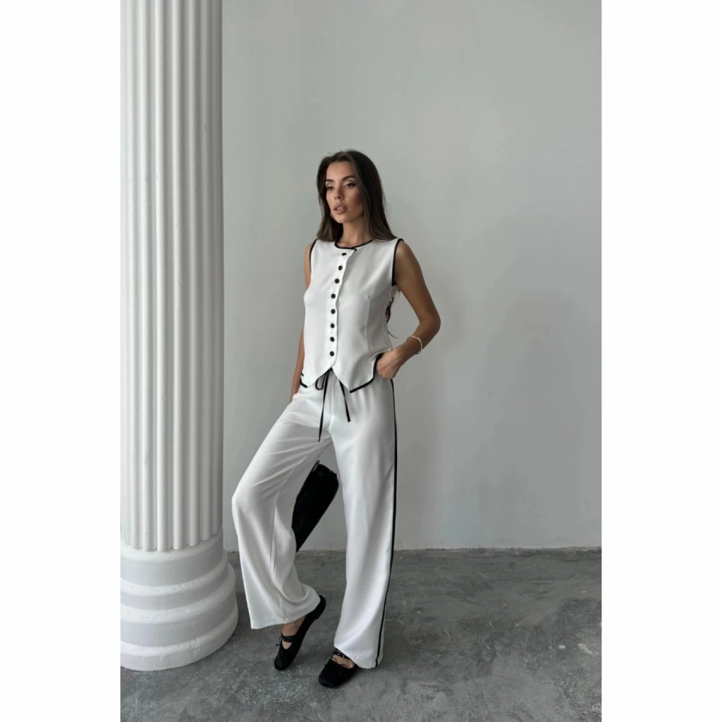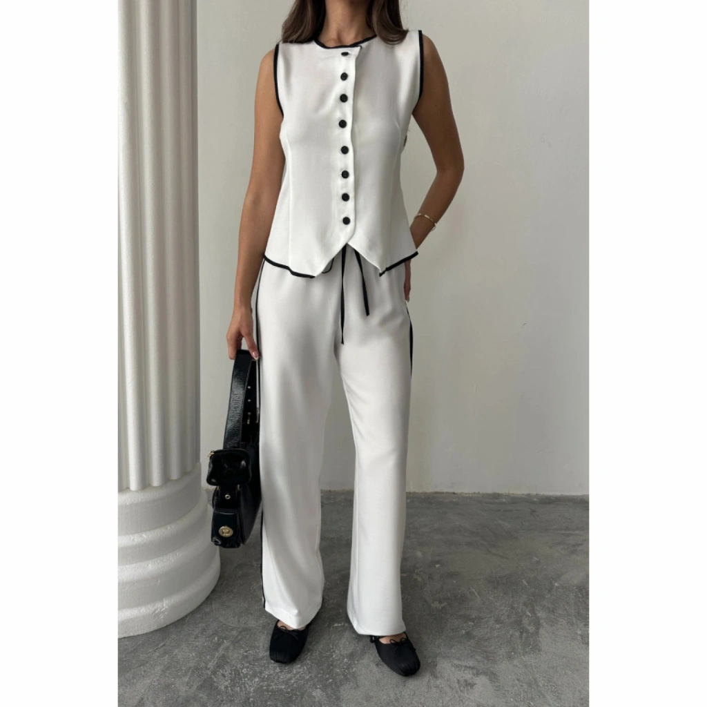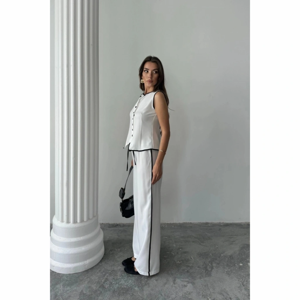 KETEN KENARLARI BİYELİ YELEK - PANTOLON TAKIM - Beyaz