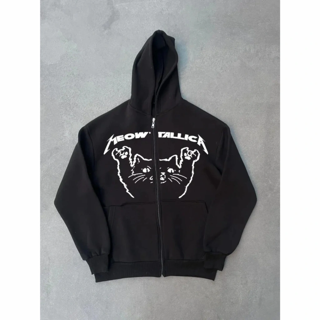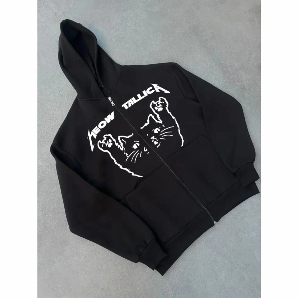 Kışlık Baskılı Fermuarlı Kapüşonlu Hırka - Siyah