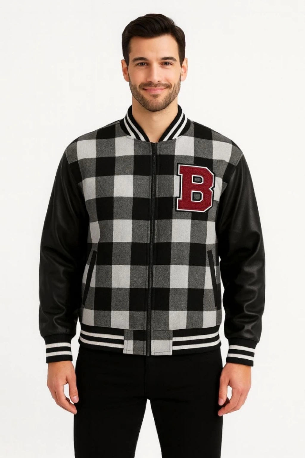 Unisex Uzun Kol Baskılı Bomber Ceket - Siyah