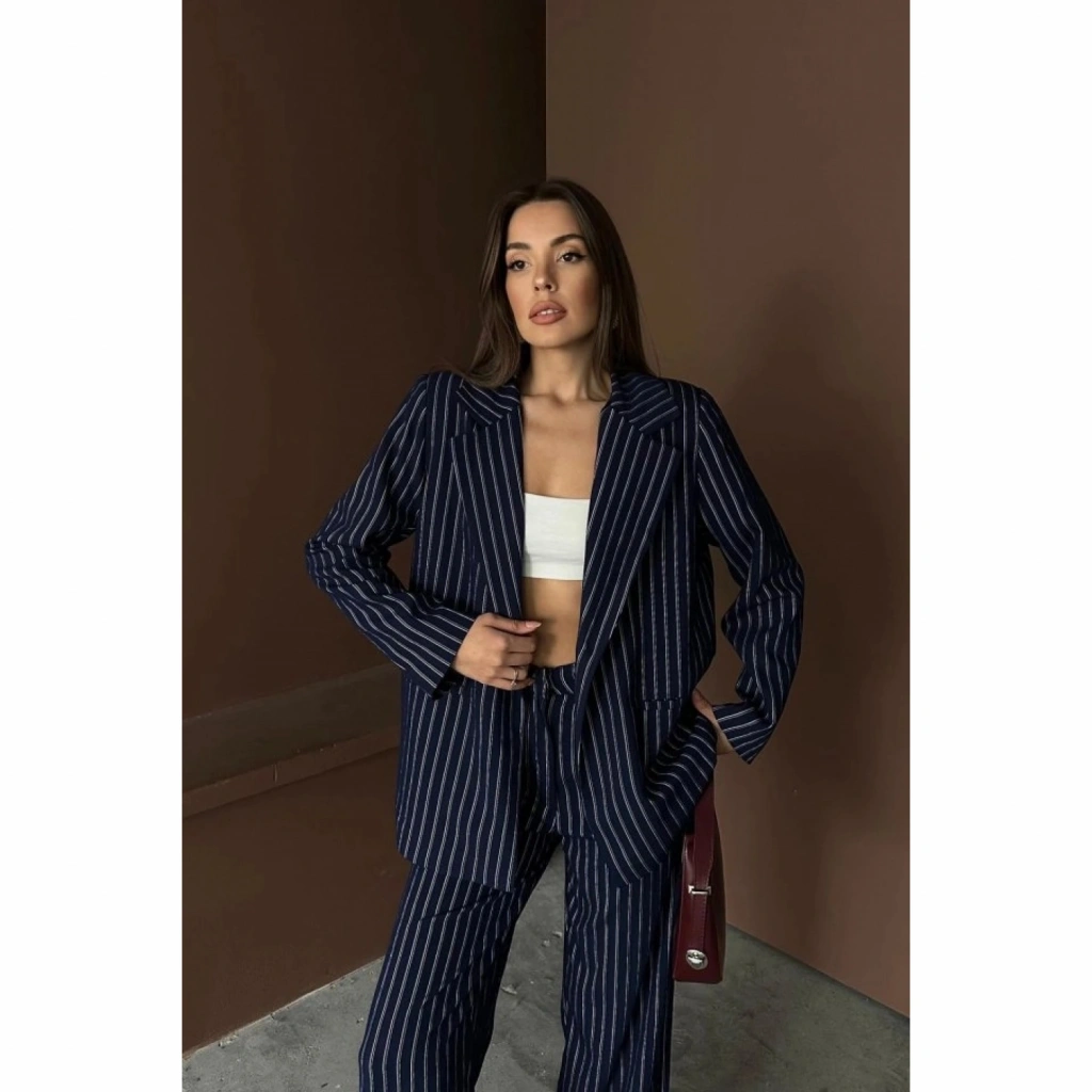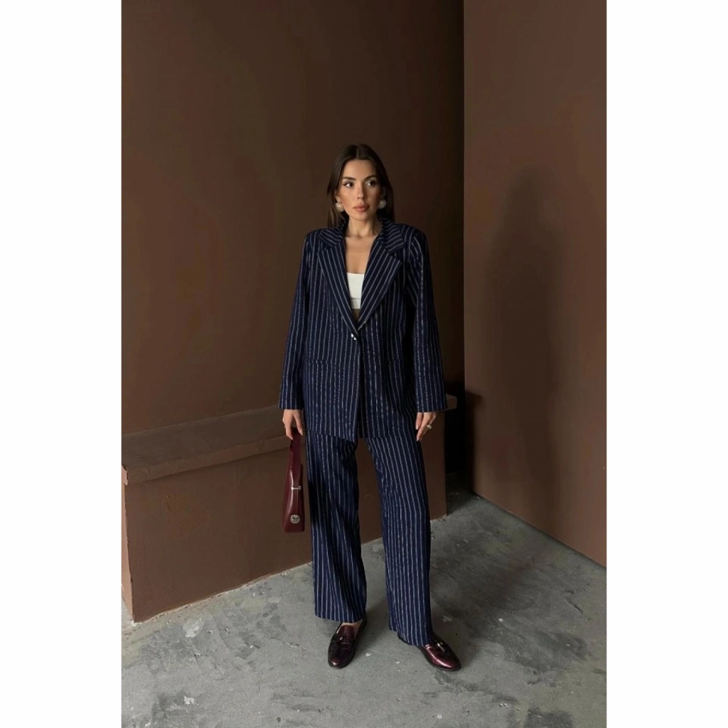 Lacivert Çizgili Ceket Ve Pantolon Takım
