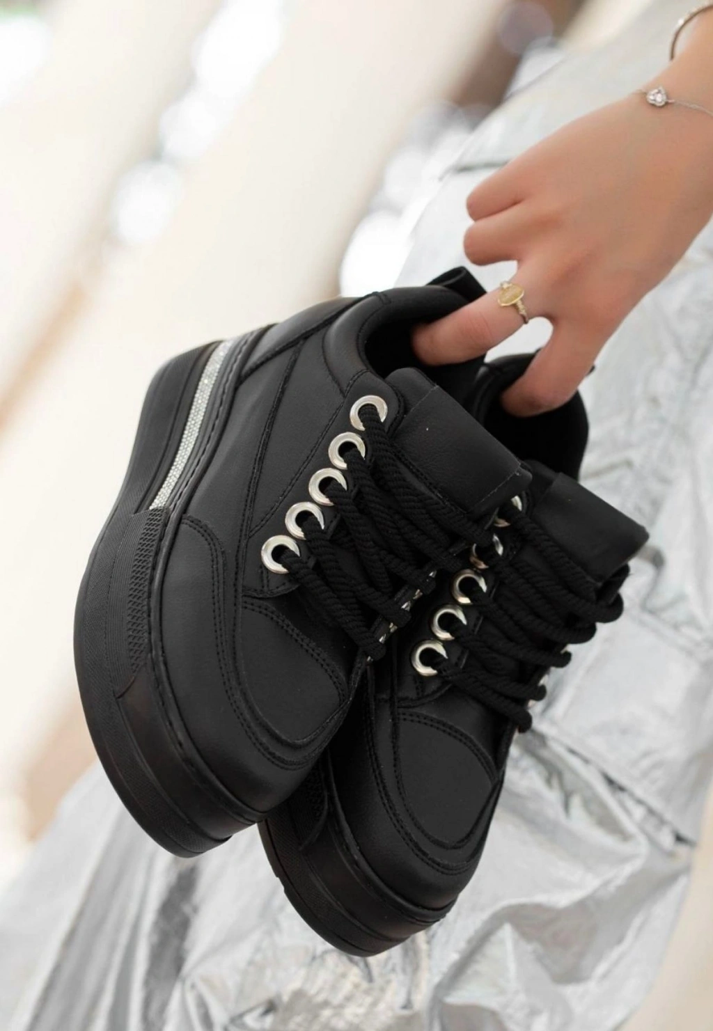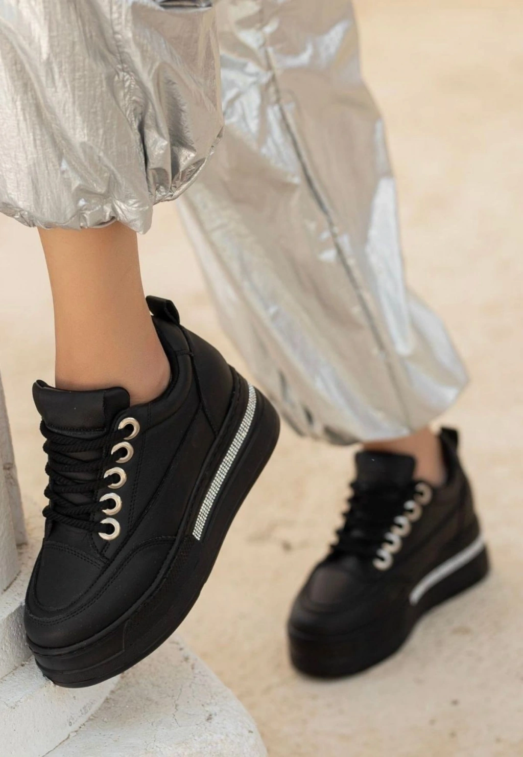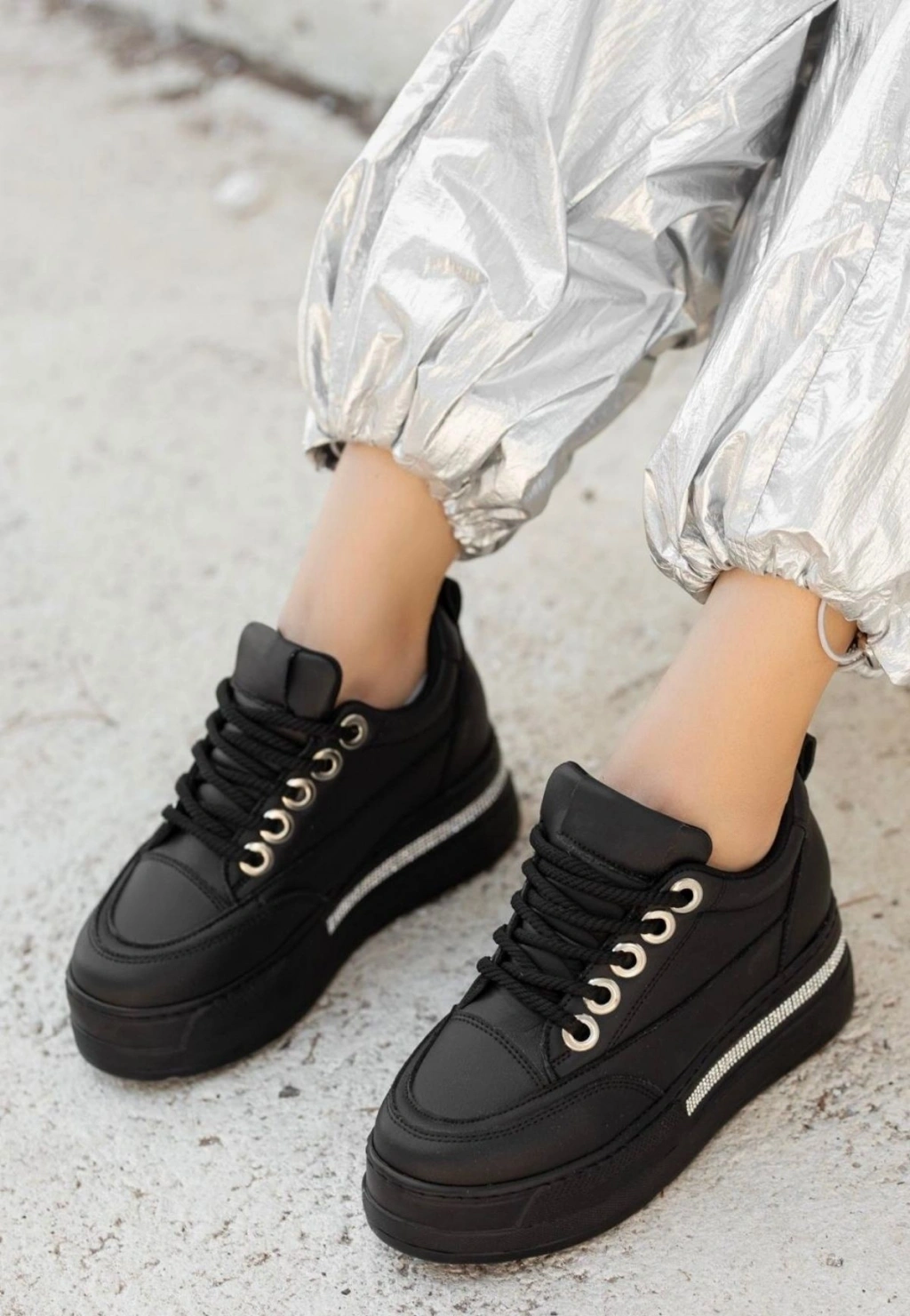 Lulu Siyah Cilt Bağcıklı Spor Ayakkabı