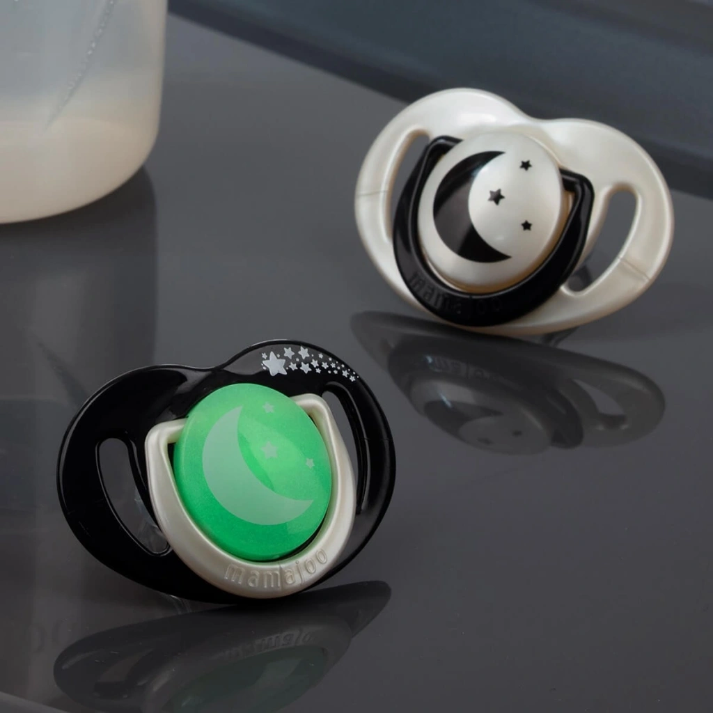Mamajoo Sterilizasyon & Saklama Kutulu İkili Desenli Ortodontik Black & Pearl / Gece & Gündüz Emzikleri, BPA ve Fitalat içermeyen yüksek kaliteli hammaddeler ile yüksek kaliteli şeffaf, tatsız ve kokusuz silikondan üretilmiştir. Her yaş grubu için ideal yumuşaklıkta ve pürüzsüz olup kolay temizlenir. Mamajoo Ortodontik Emzikler; bebeklerin diş ve damak gelişimine uygun şekilde damaklı formda tasarlanmış olup, emzik kalkanındaki ekstra geniş hava delikleri salya birikimini önleyip sürekli hava dolaşımını sağlayarak bebeklerin hassas cildinin tahriş olmasını engellemeye yardımcıdır. Mamajoo Sterilizasyon & Saklama Kutulu İkili Desenli Ortodontik Black & Pearl / Gece & Gündüz Emzikleri, hem gece hem de gündüz kullanım için uygundur ve karanlıkta bir süre parlayan emzik gövdesi sayesinde gece kolaylıkla emziğin bulunmasını sağlar.