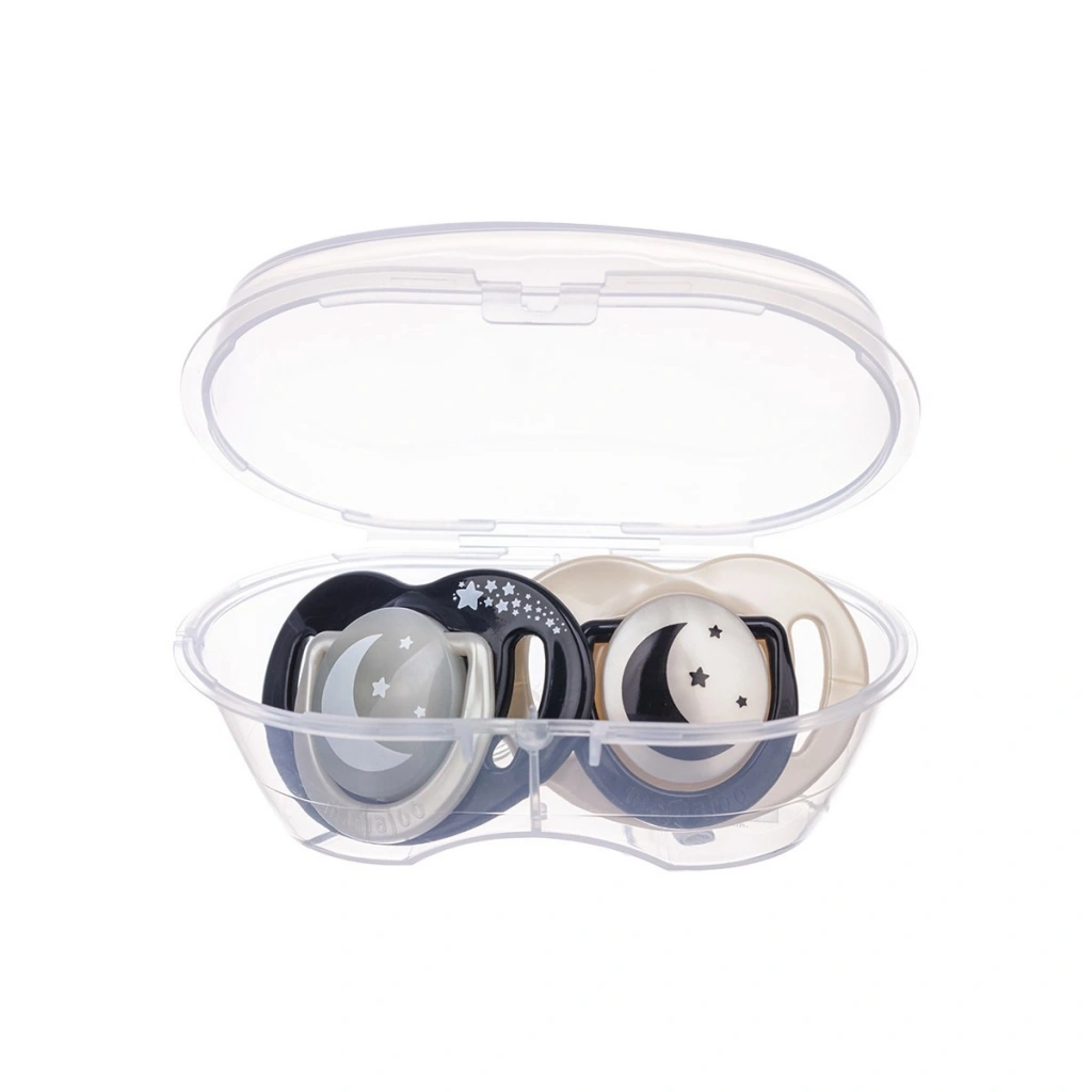 Mamajoo Sterilizasyon & Saklama Kutulu Black & Pearl Desenli İkili Ortodontik Emzik Gece & Gündüz / 0 Ay+