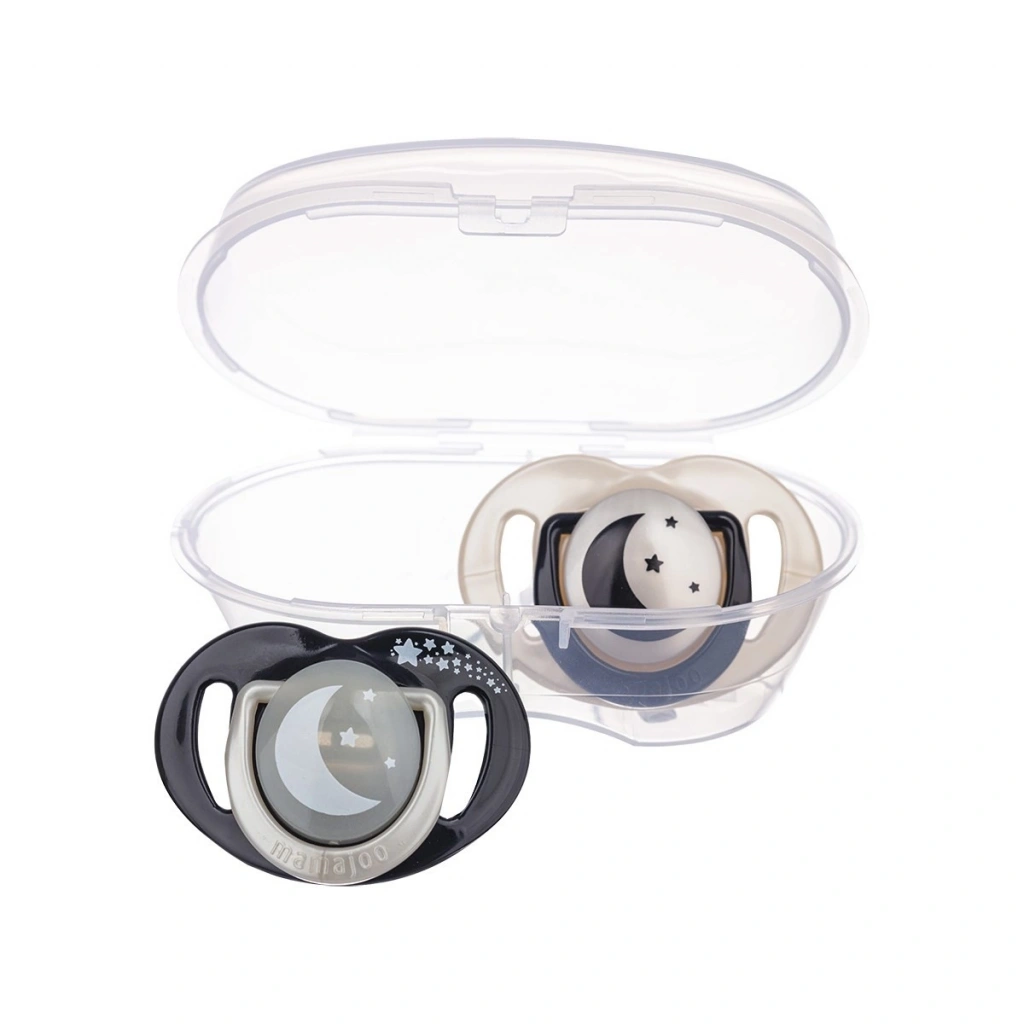 Mamajoo Sterilizasyon & Saklama Kutulu İkili Desenli Ortodontik Black & Pearl / Gece & Gündüz Emzikleri, BPA ve Fitalat içermeyen yüksek kaliteli hammaddeler ile yüksek kaliteli şeffaf, tatsız ve kokusuz silikondan üretilmiştir. Her yaş grubu için ideal yumuşaklıkta ve pürüzsüz olup kolay temizlenir. Mamajoo Ortodontik Emzikler; bebeklerin diş ve damak gelişimine uygun şekilde damaklı formda tasarlanmış olup, emzik kalkanındaki ekstra geniş hava delikleri salya birikimini önleyip sürekli hava dolaşımını sağlayarak bebeklerin hassas cildinin tahriş olmasını engellemeye yardımcıdır. Mamajoo Sterilizasyon & Saklama Kutulu İkili Desenli Ortodontik Black & Pearl / Gece & Gündüz Emzikleri, hem gece hem de gündüz kullanım için uygundur ve karanlıkta bir süre parlayan emzik gövdesi sayesinde gece kolaylıkla emziğin bulunmasını sağlar.