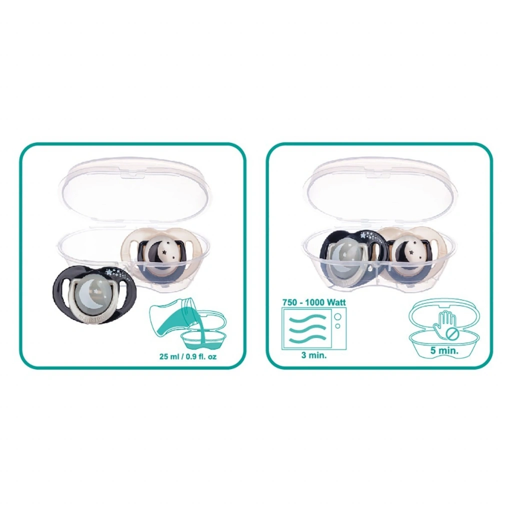 2 x Mamajoo Silikon Ortodontik Emzik 12 ay+ 1 x Mamajoo Sterilizasyon & Saklama Kutusu