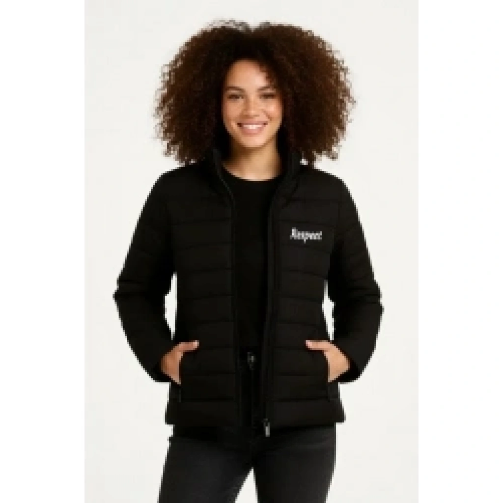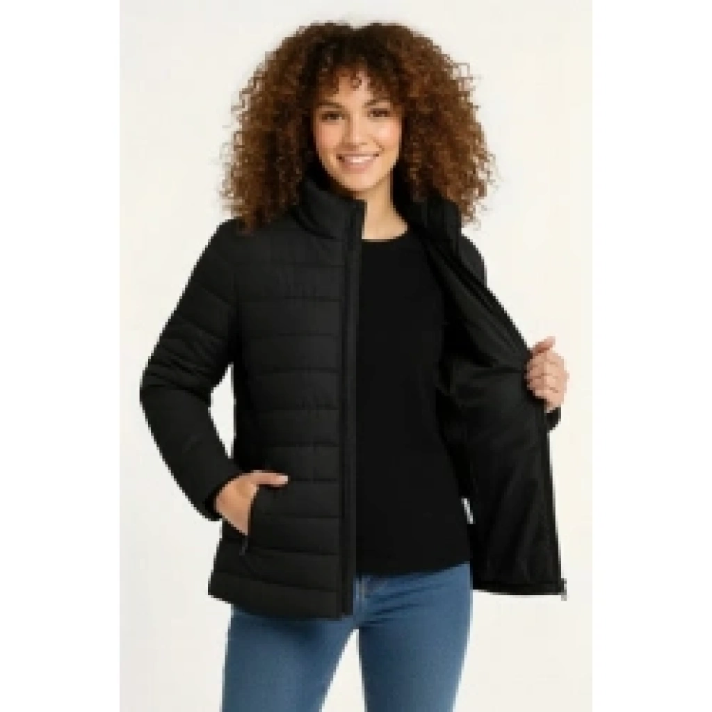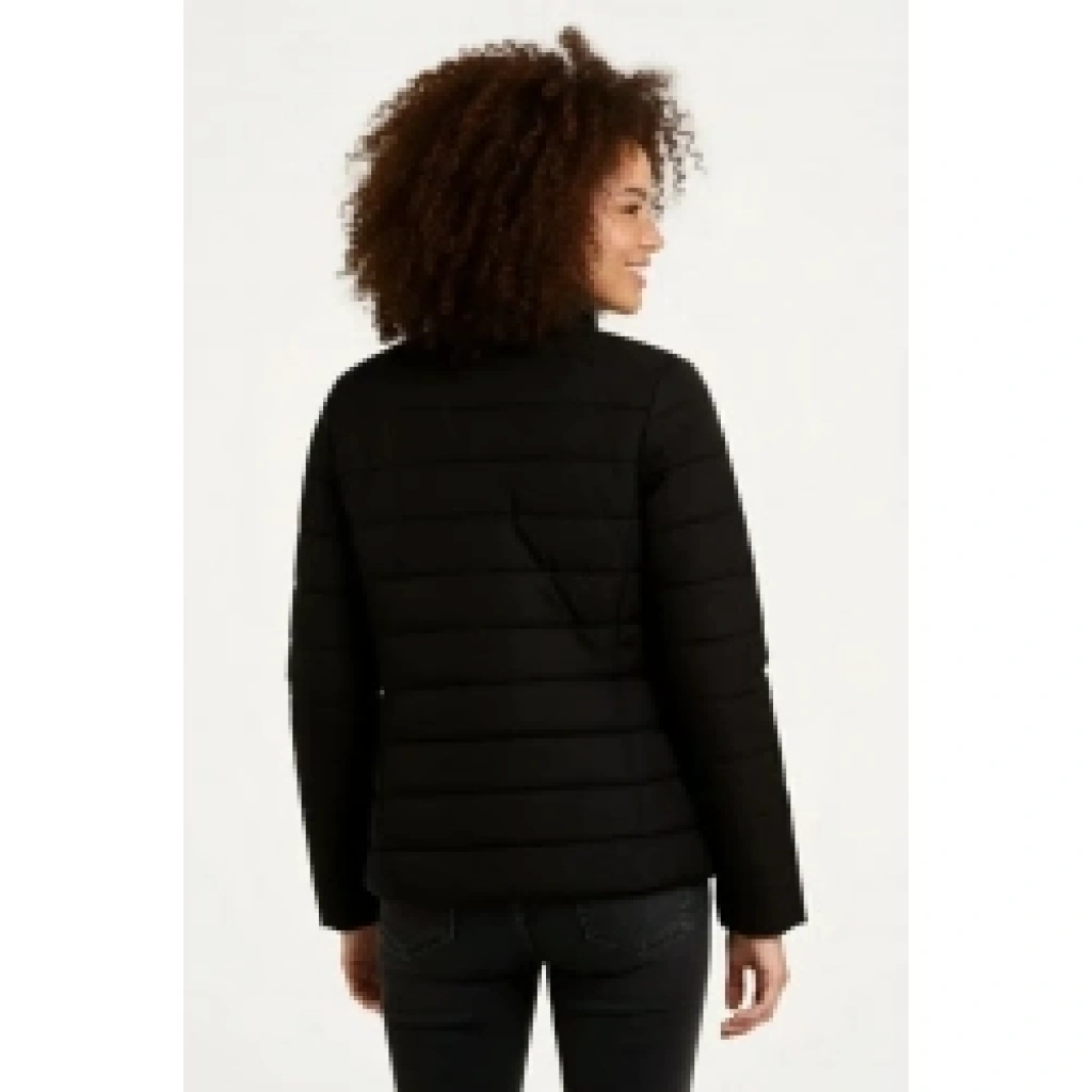 Mikro Su İtici Kapitone Baskılı Astarlı Fermuarlı Bomber Mont - Siyah
