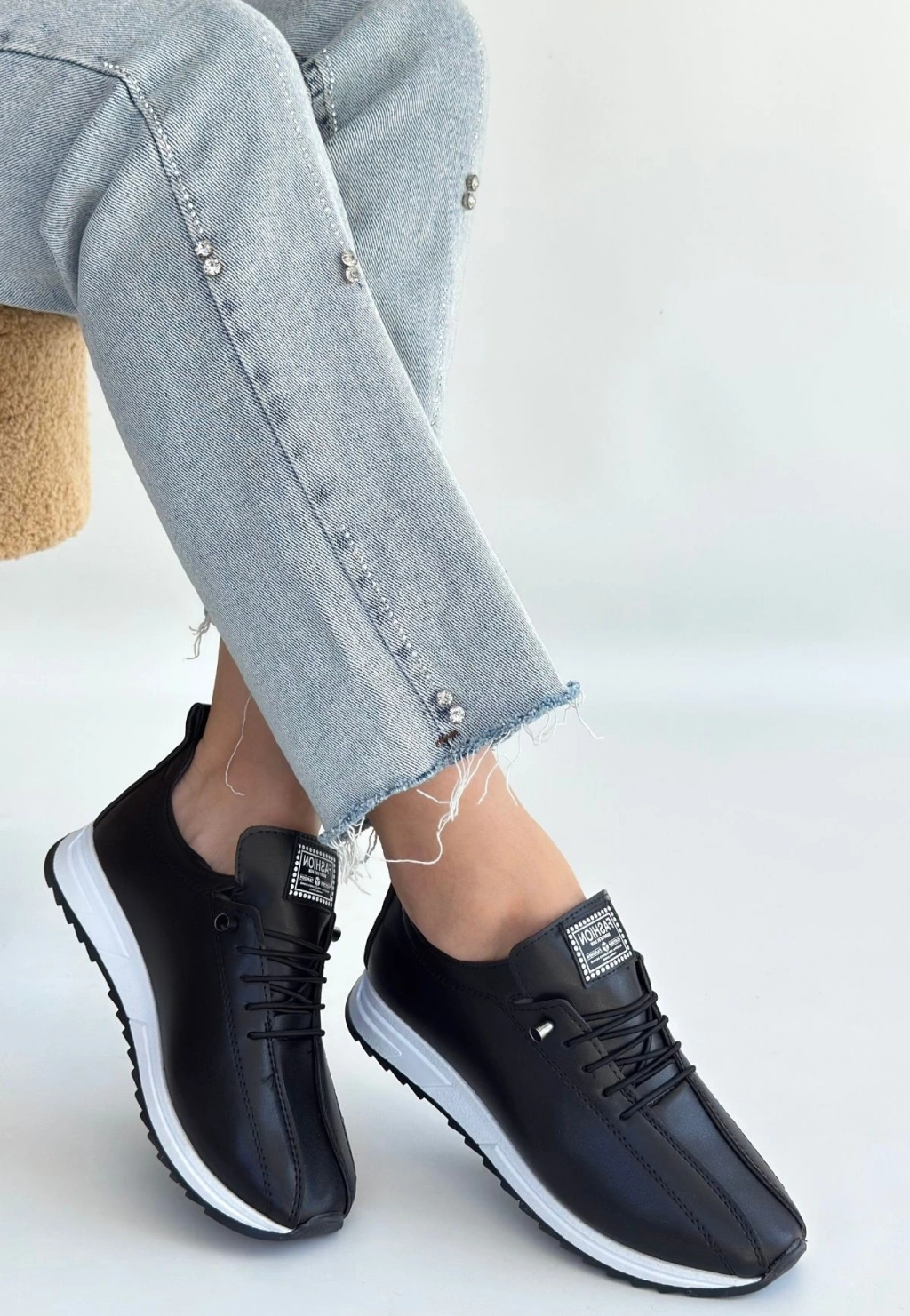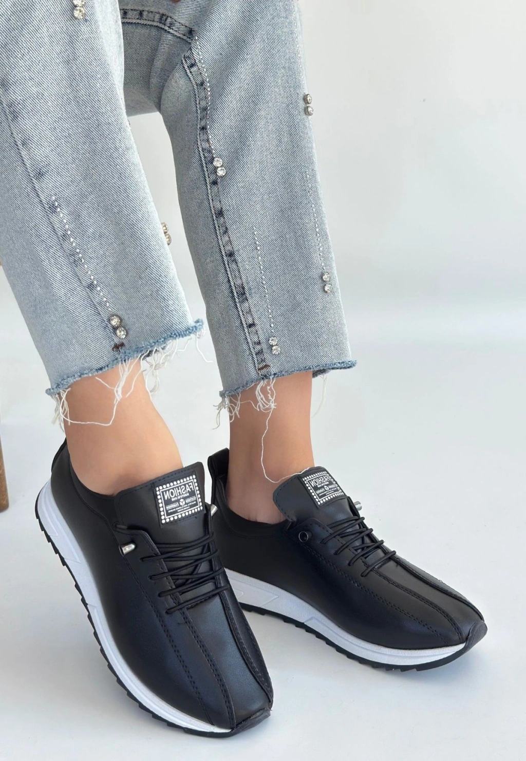 Monya Siyah Cilt Bağcıklı Spor Ayakkabı
