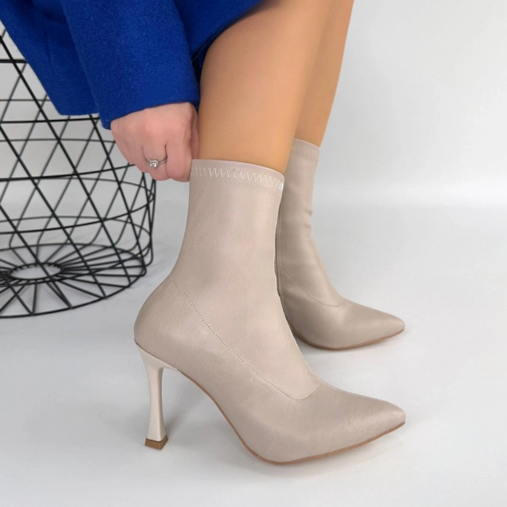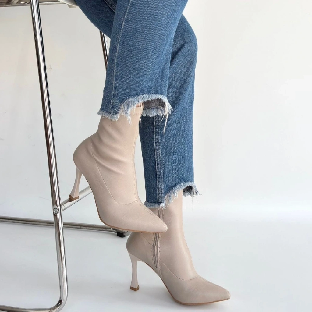 Orjen Bej Cilt Streç Topuklu Bot