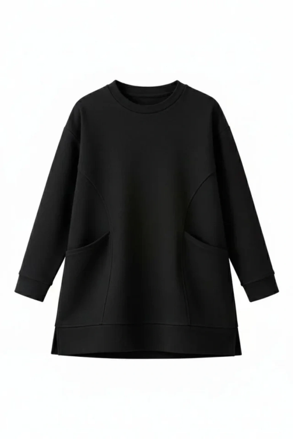 Osy Modal Yumuşak Dokulu Kumaş Tesettür Cepli Tunik Pantolon Takım - Siyah