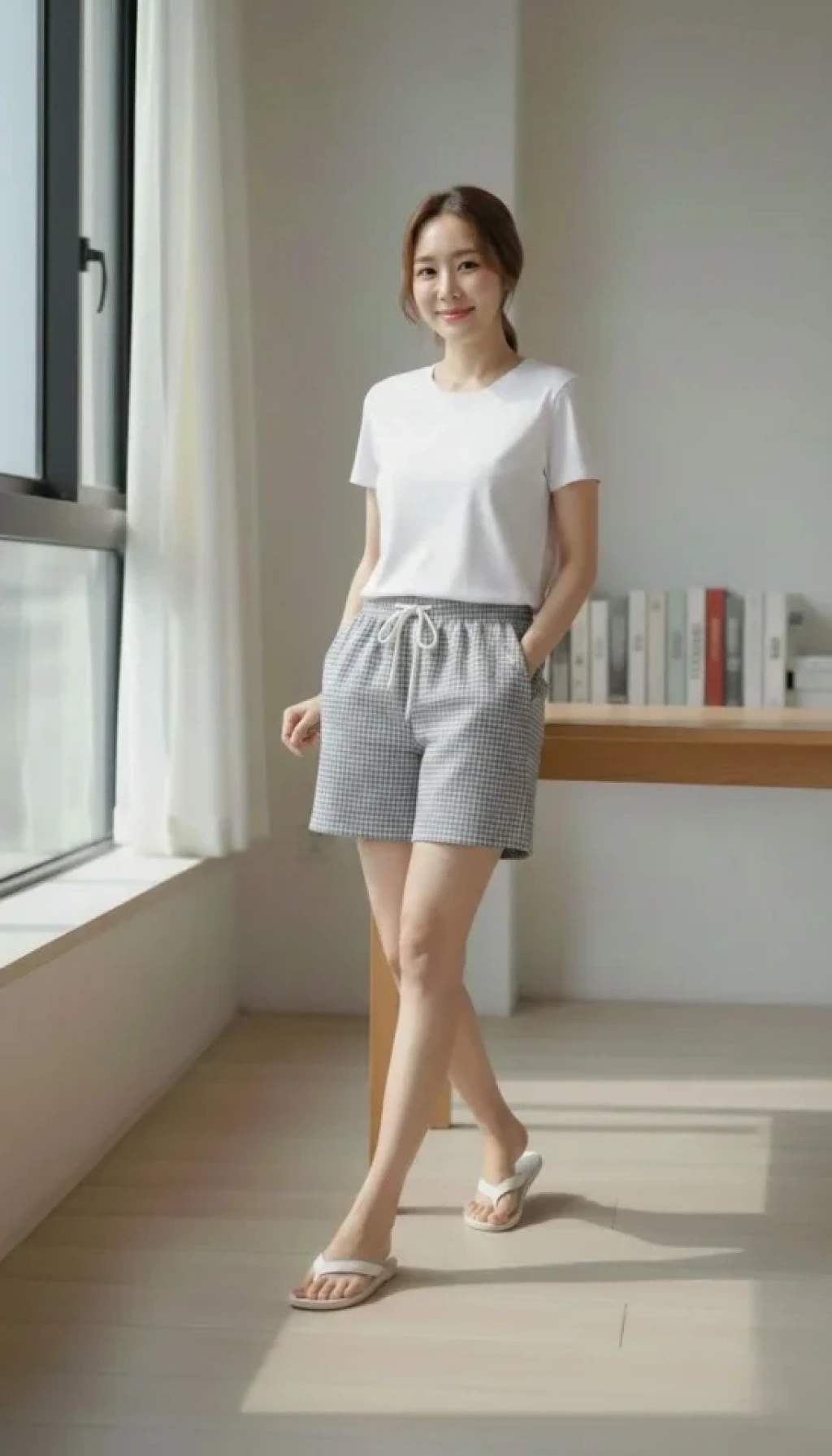 Pötikareli Şort – Beli Lastikli Bağcıklı, Cepli, Rahat Kesim Günlük Yazlık Şort - Füme