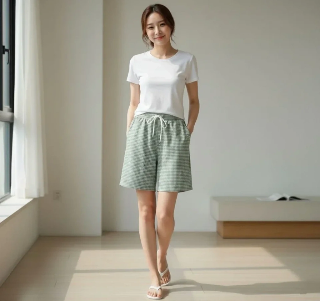 Pötikareli Şort – Beli Lastikli Bağcıklı, Cepli, Rahat Kesim Günlük Yazlık Şort - Mint Yeşili