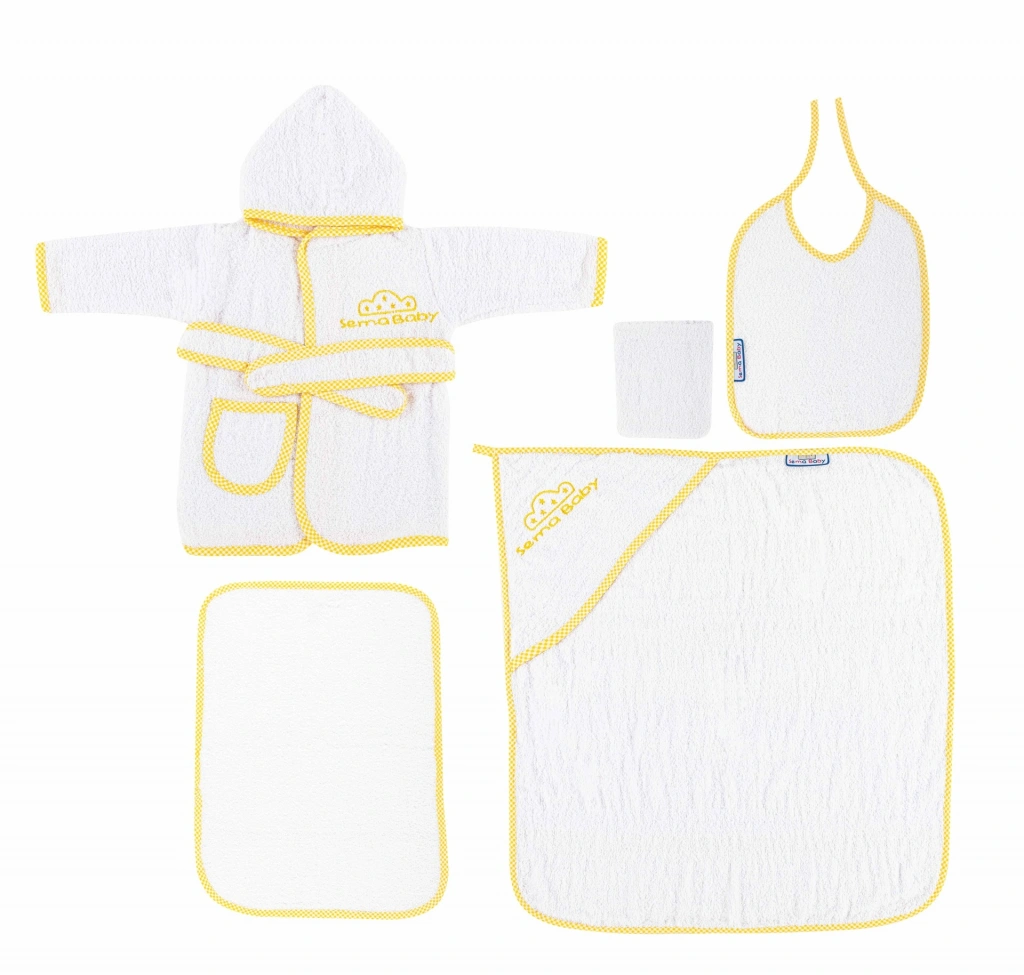 Sema Baby 5 Parça Bebek Bornoz Seti - Sarı
