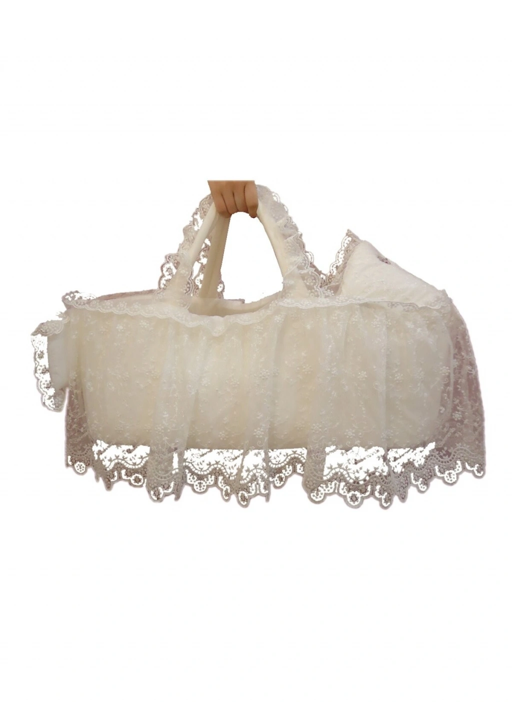 Sema Baby Fistolu Güpürlü Lüks Yenidoğan Bebek Yatağı - Ekru