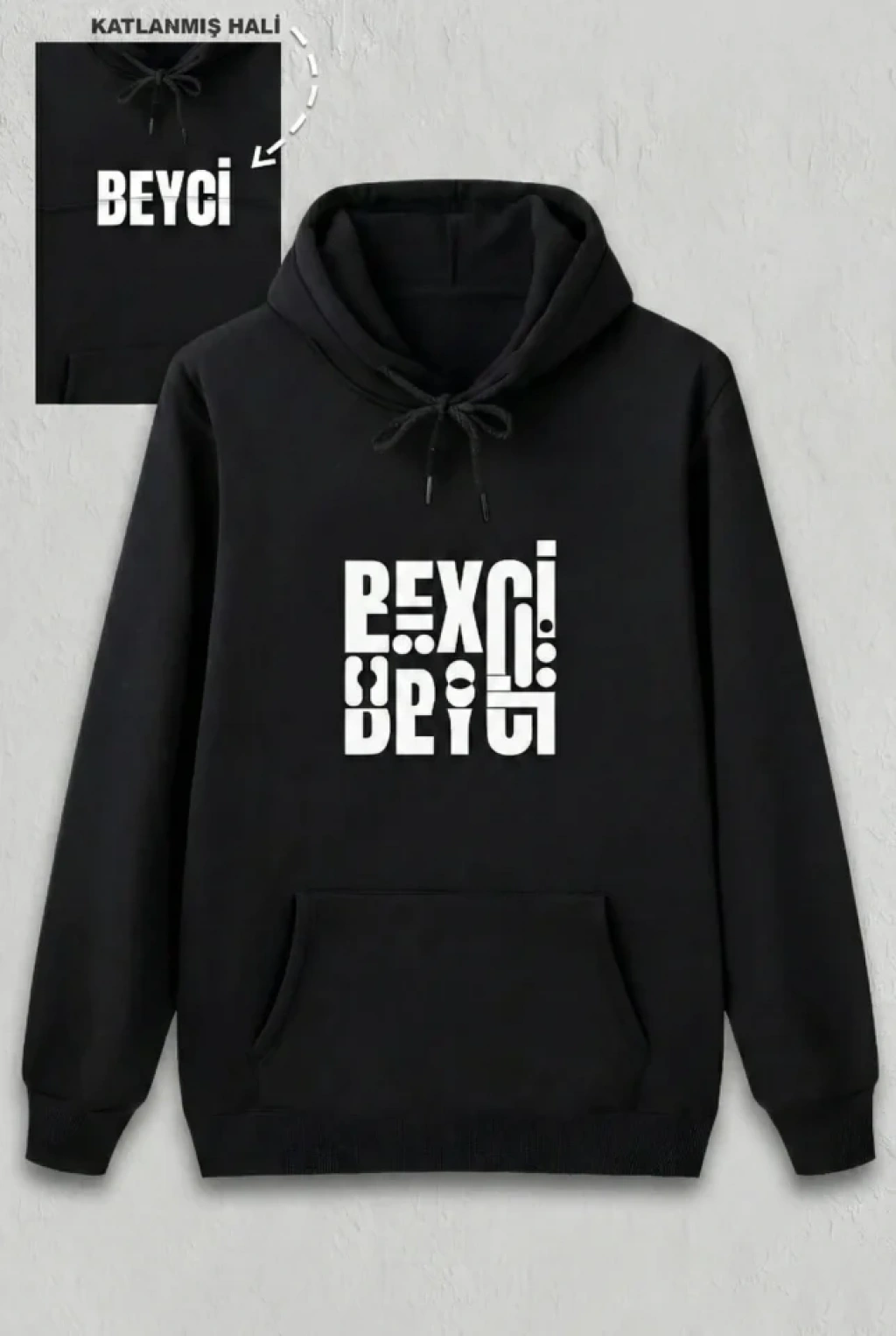 Sevgililer Günü Özel Kapüşonlu Beyci Baskılı Oversize Sweatshirt - Siyah