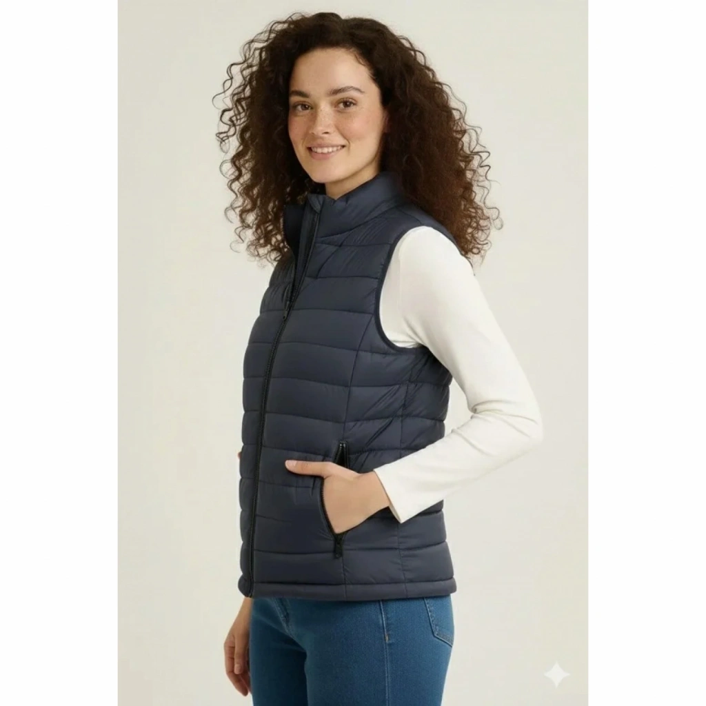 Şişme Fermuarlı Yelek Su Itici Kapitone Astarlı Kumaş Cepli Hafif Kışlık Spor Rahat Kalıp - Lacivert