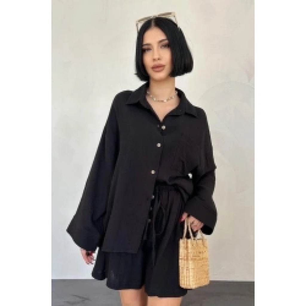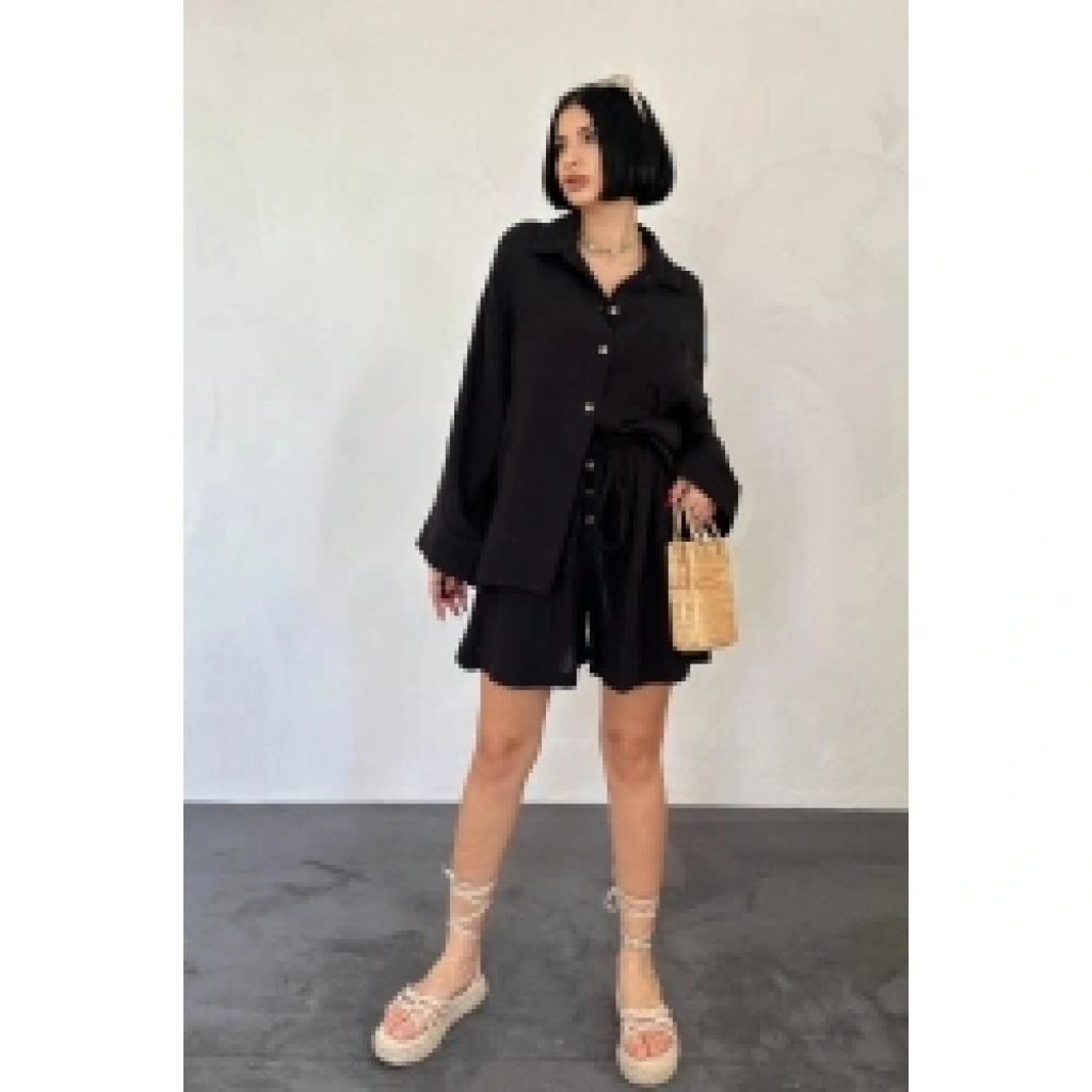 Siyah Gömlek Ve Müslin Şort Takım