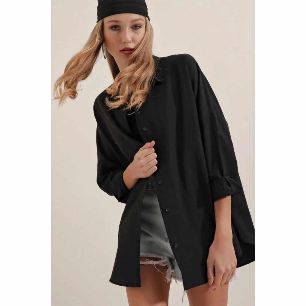 Siyah Oversize Uzun Basic Gömlek 3900