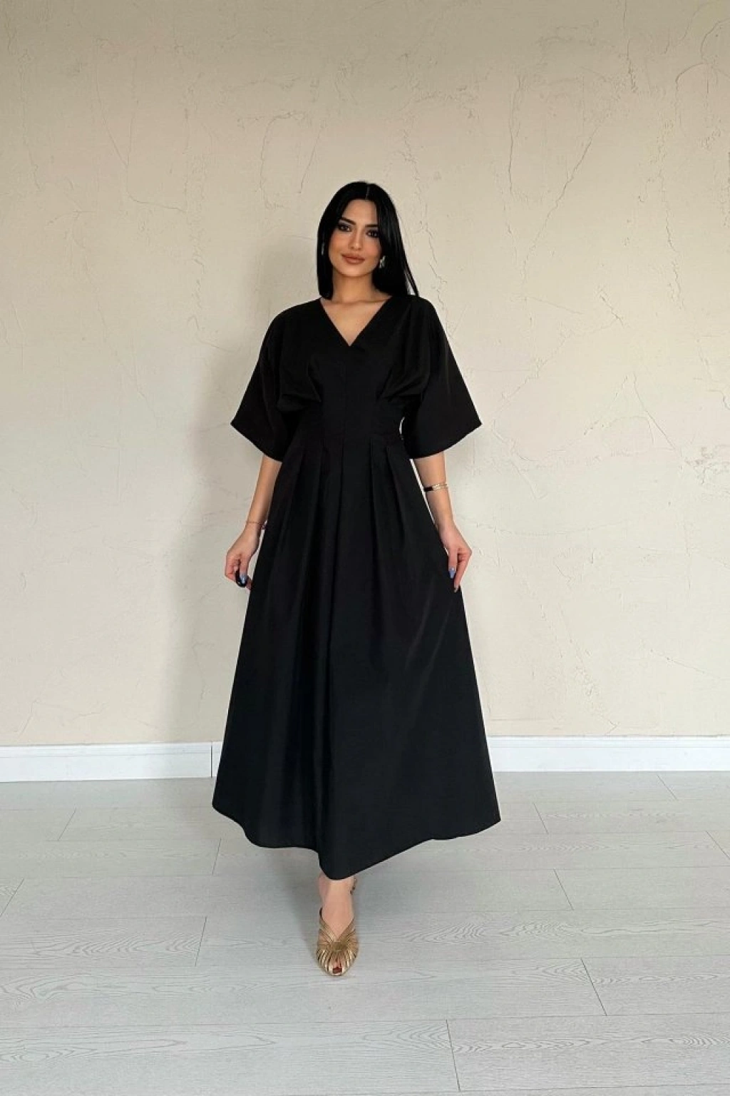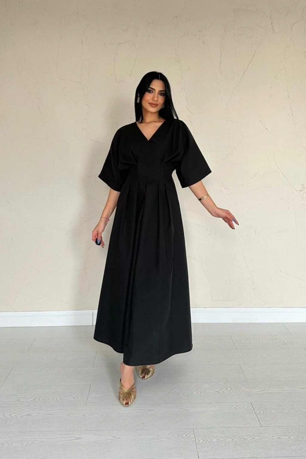 Siyah Pileli Uzun Elbise