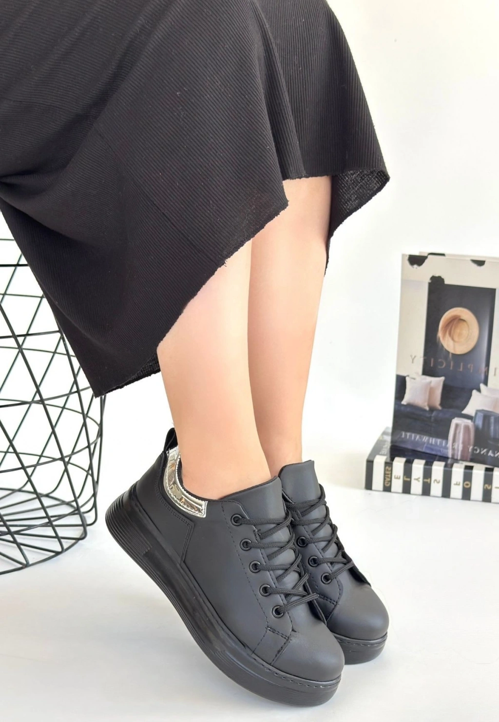 Sofio Siyah Cilt Bağcıklı Spor Ayakkabı