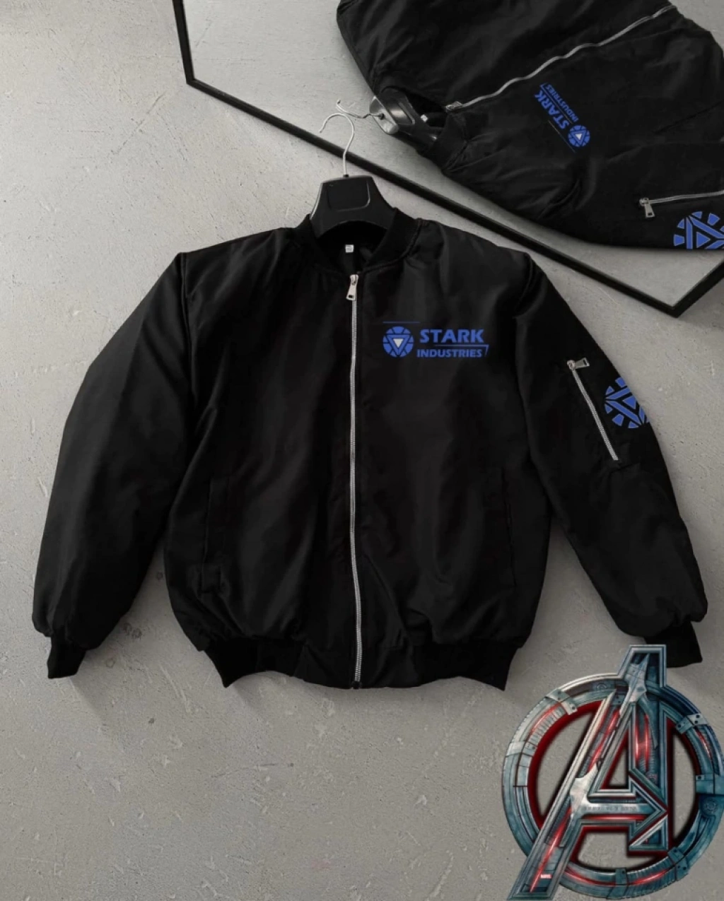 Tam Fermuarlı Uzun Kol Baskılı Bomber Ceket - Siyah