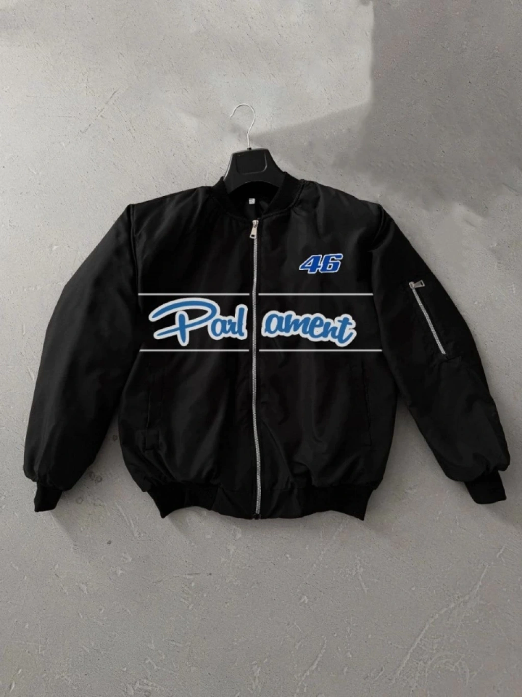 Unisex Uzun Kol Baskılı Bomber Ceket - Siyah