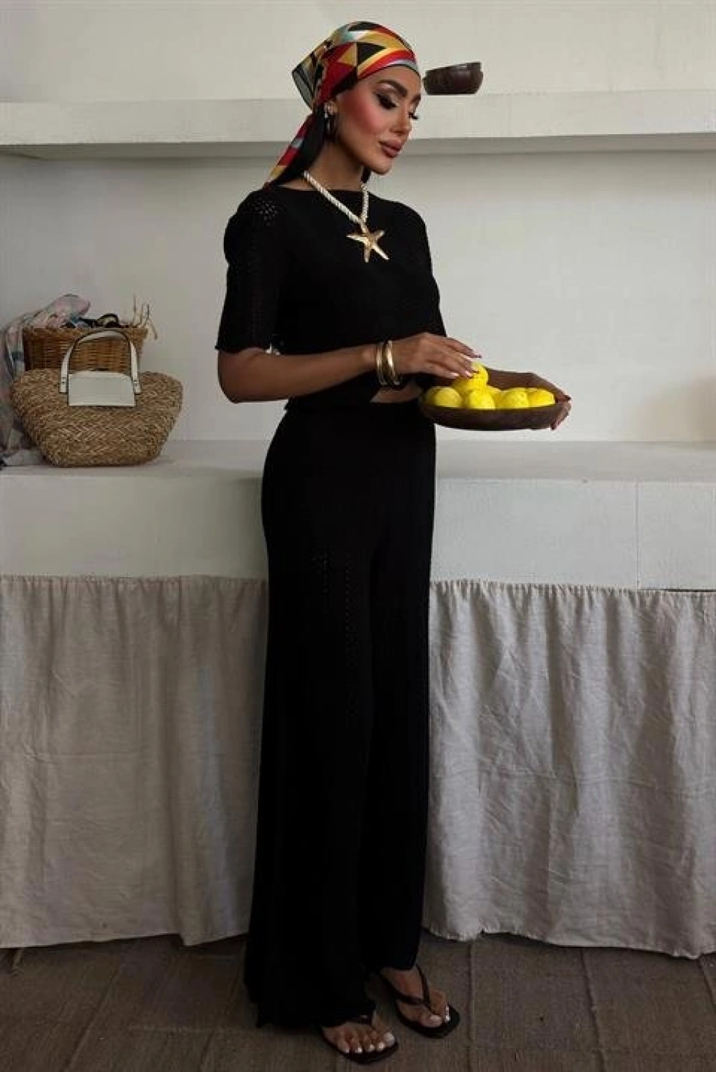 Modelin Ölçüleri: Boy:165, Kg:55, Göğüs:90, Bel:72, Kalça: 100