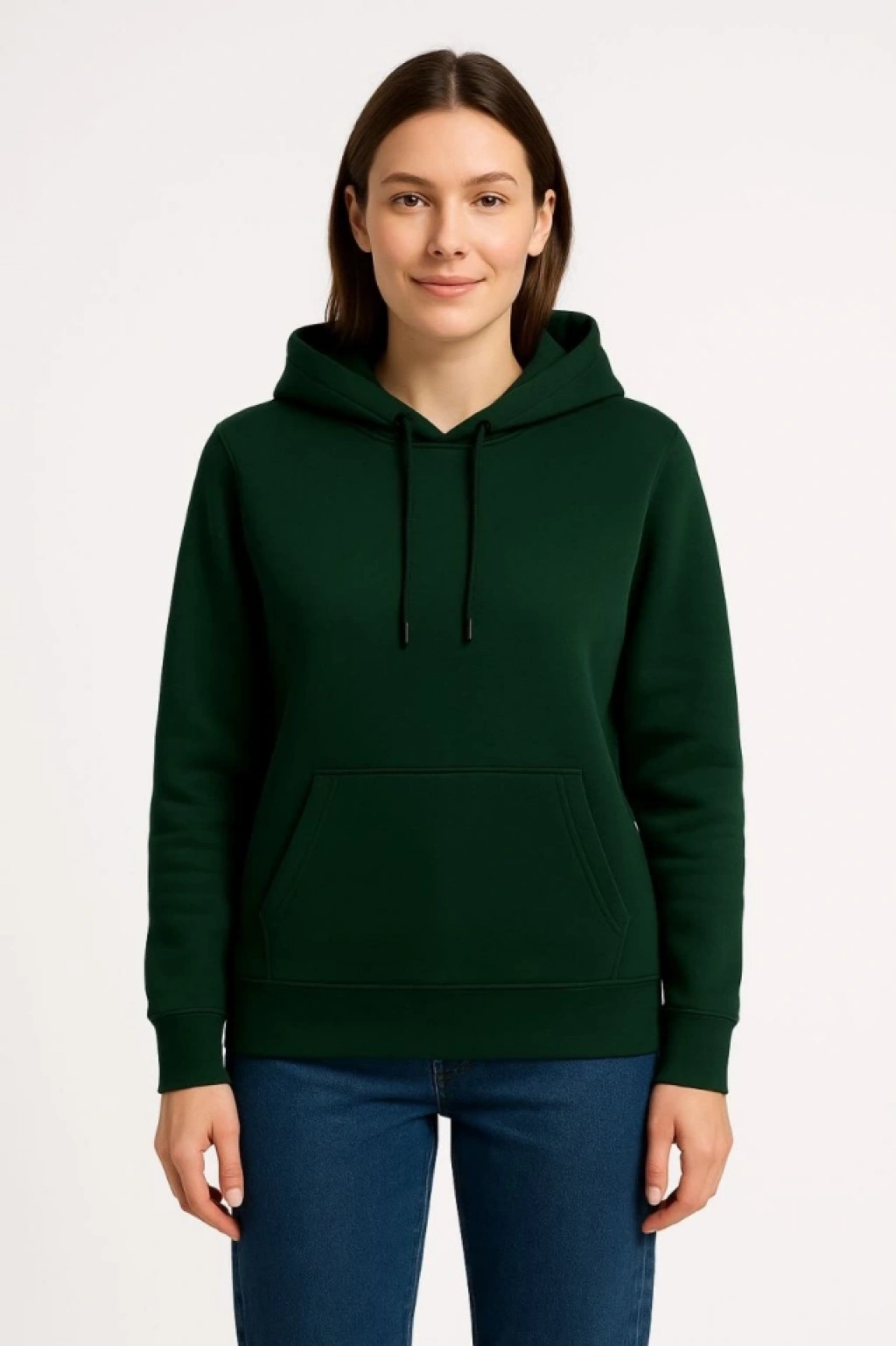 Üç İplik Kapüşonlu Kanguru Çepli SweatShirt Hoodie - Haki