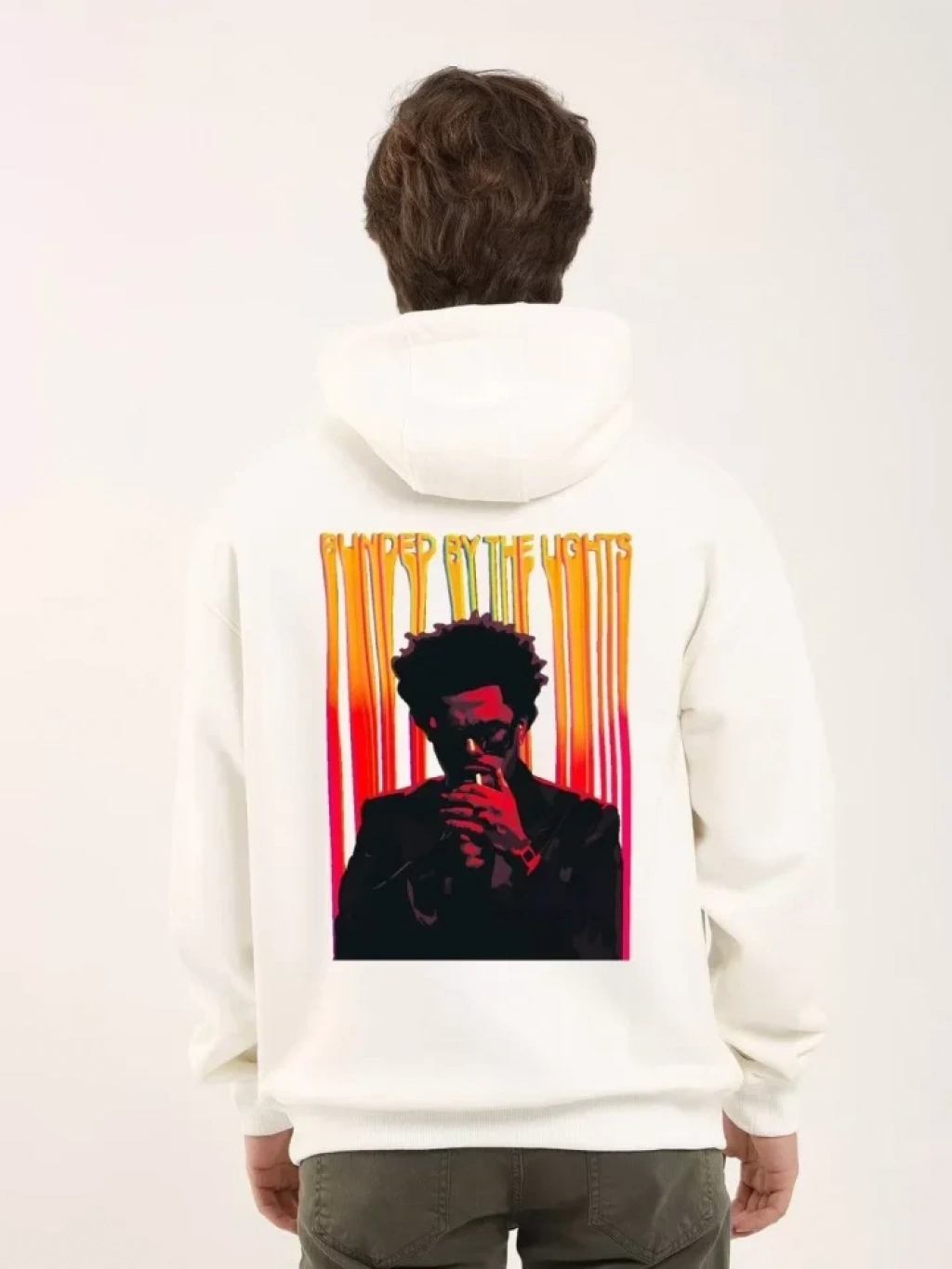 Erkek Sırt Baskılı Oversize Üç İplik Kapüşonlu Sweatshirt - Beyaz