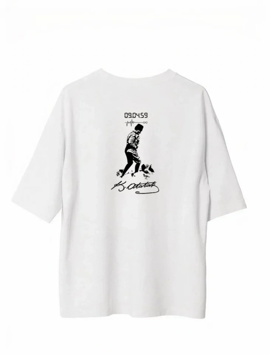 Unisex Bisiklet Yaka Baskılı Oversize T-Shirt - Beyaz