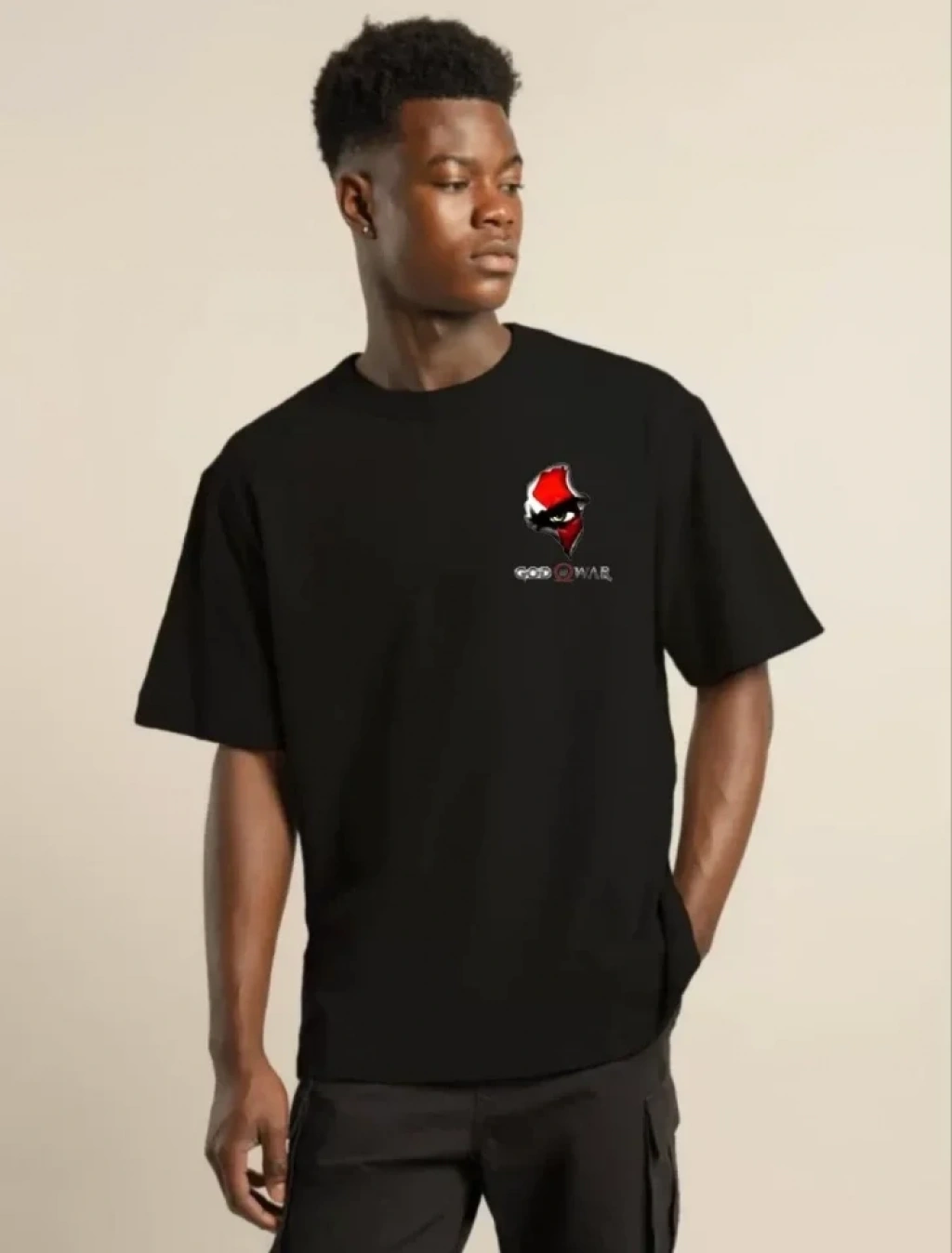 Erkek Melek Baskılı Oversize T-shirt - Siyah