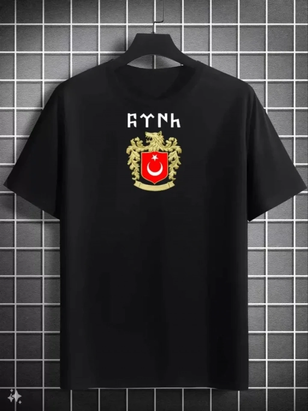 Erkek Bisiklet Yaka Ön Baskılı Kısa Kollu Tişört Streetwear Günlük Basic Pamuklu T-shirt - Siyah