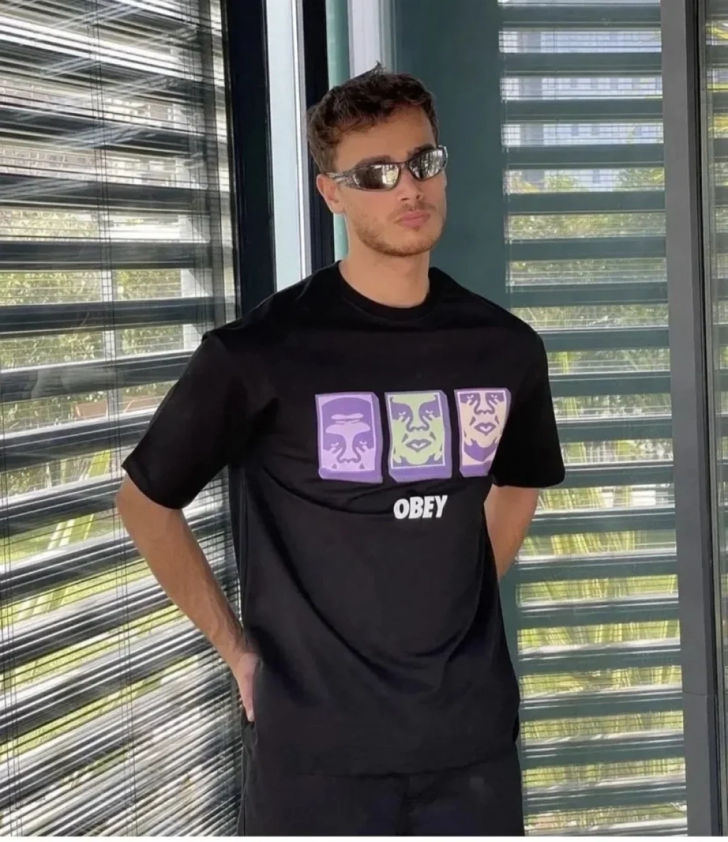 Erkek Bisiklet Yaka Ön Baskılı Kısa Kollu Tişört Streetwear Günlük Basic Pamuklu T-shirt - Siyah