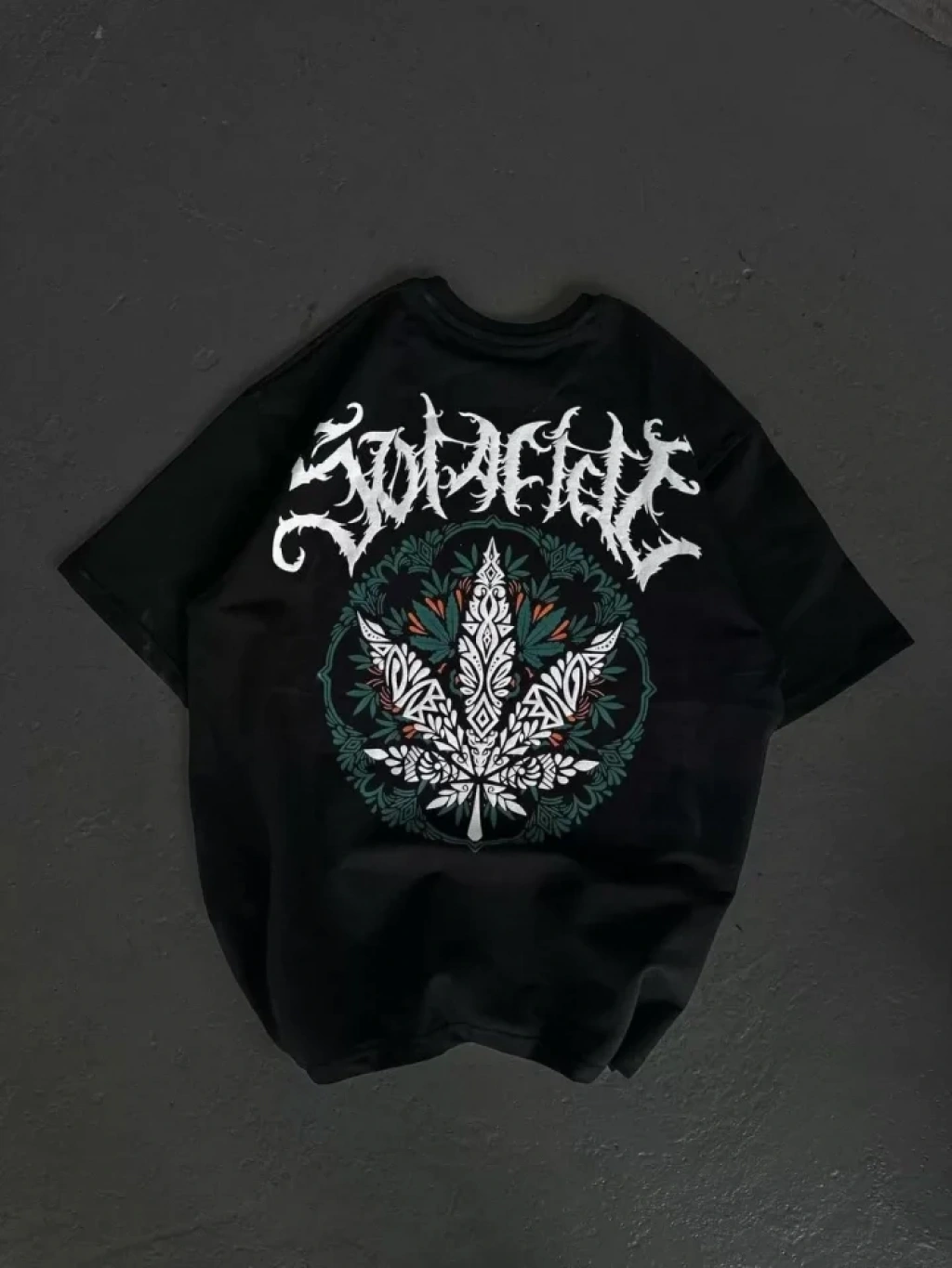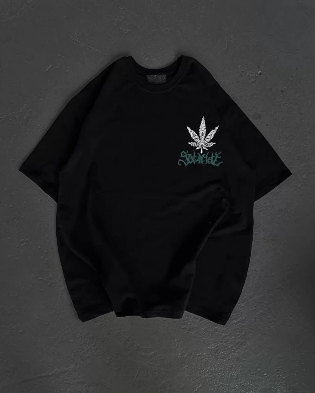 Unisex Bisiklet Yaka Baskılı Oversize T-Shirt - Siyah