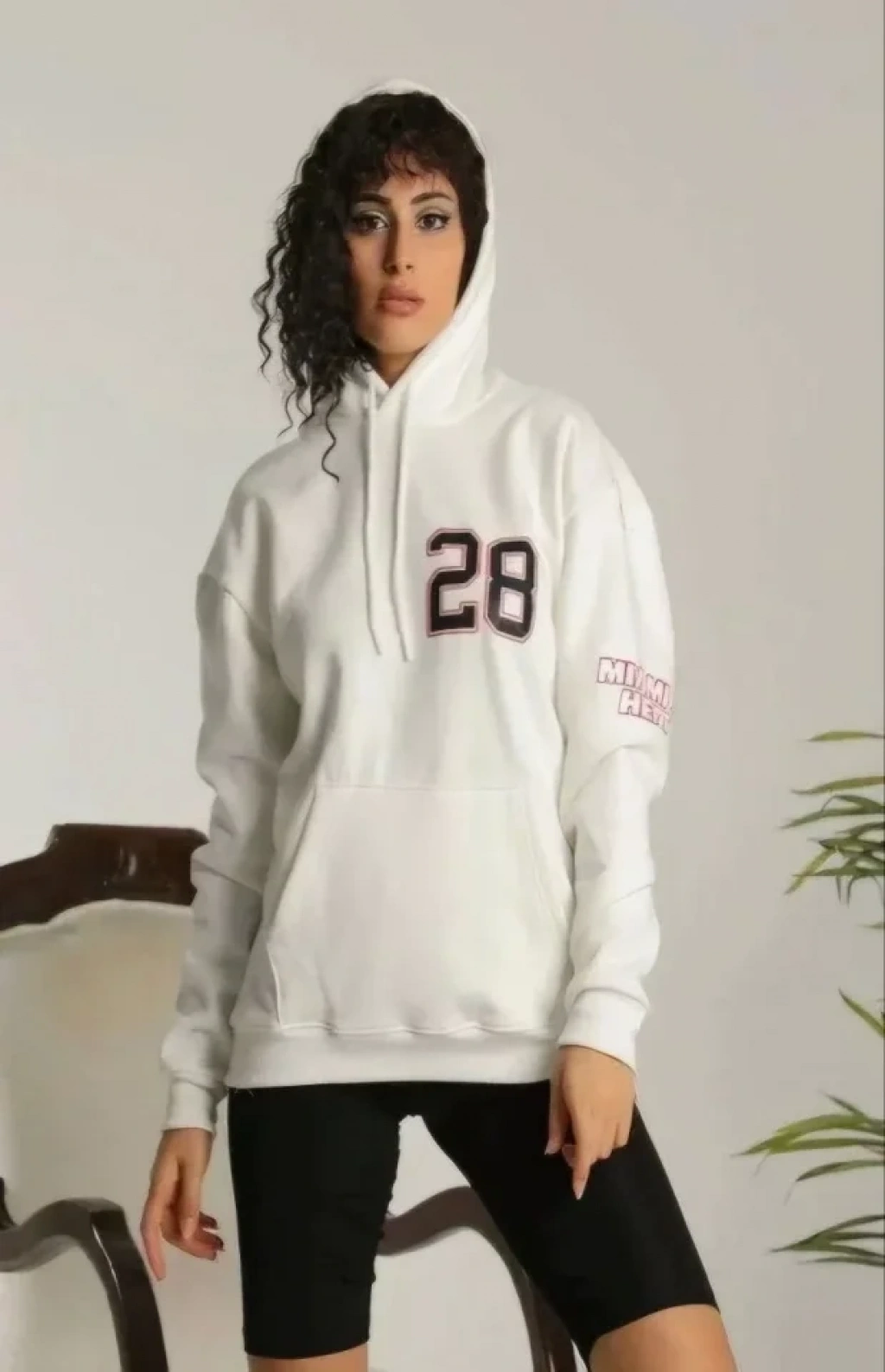 Unisex Kapşonlu Baskılı Sweetshirt - Beyaz