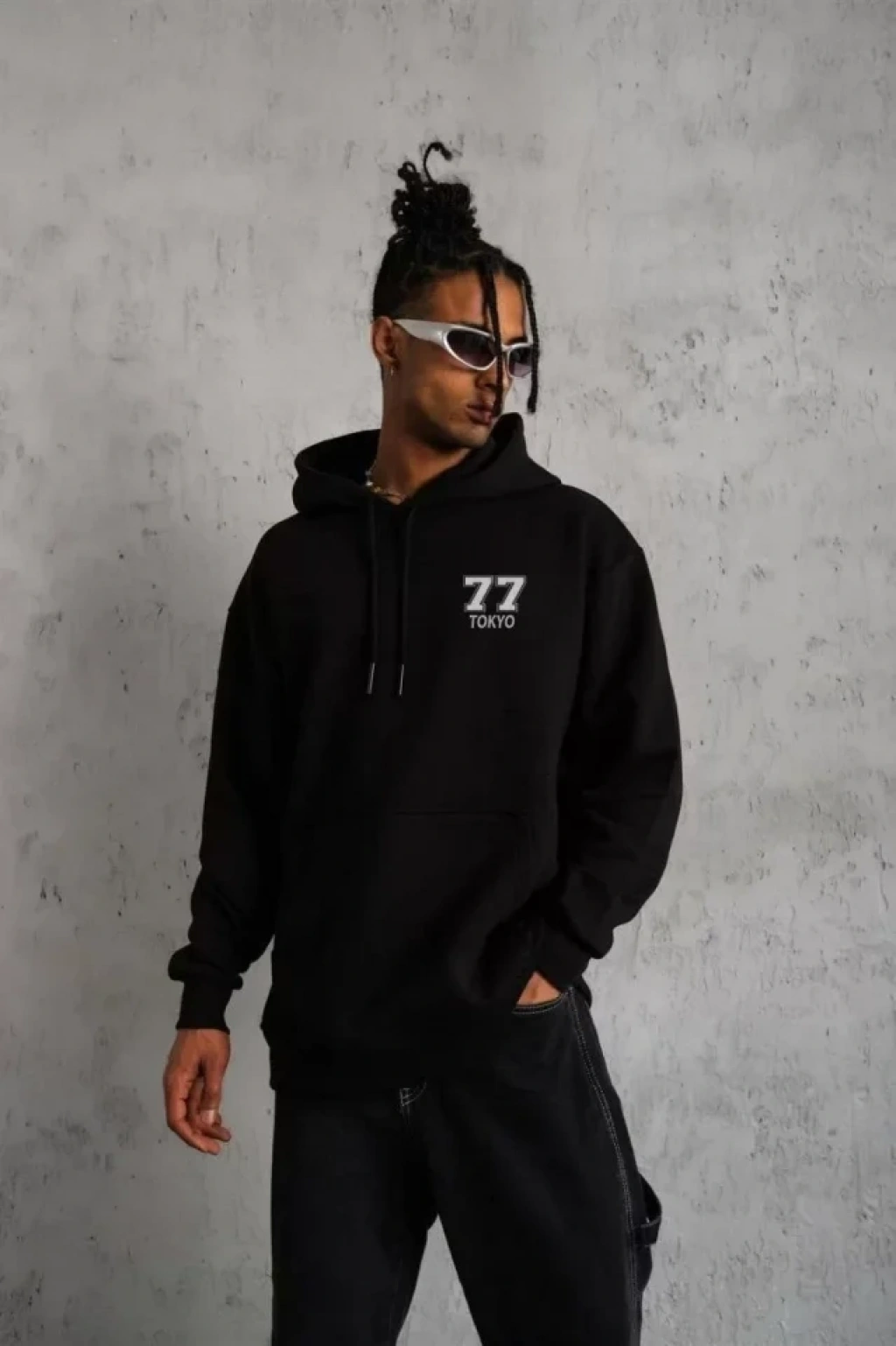 Unisex Kapşonlu Baskılı Sweetshirt - Siyah