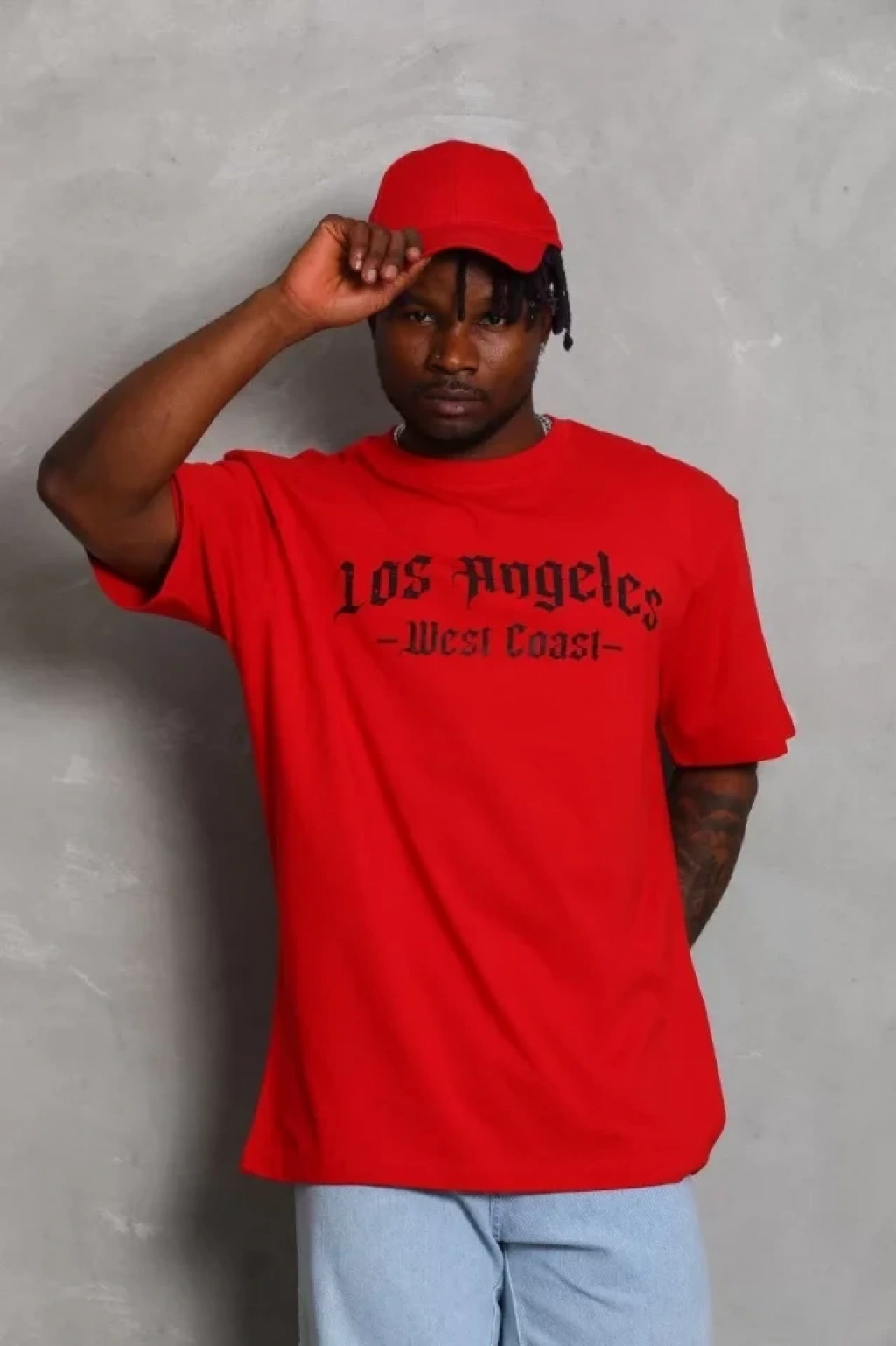 Unisex Oversize Baskılı Bisiklet Yaka T-Shirt - Kırmızı