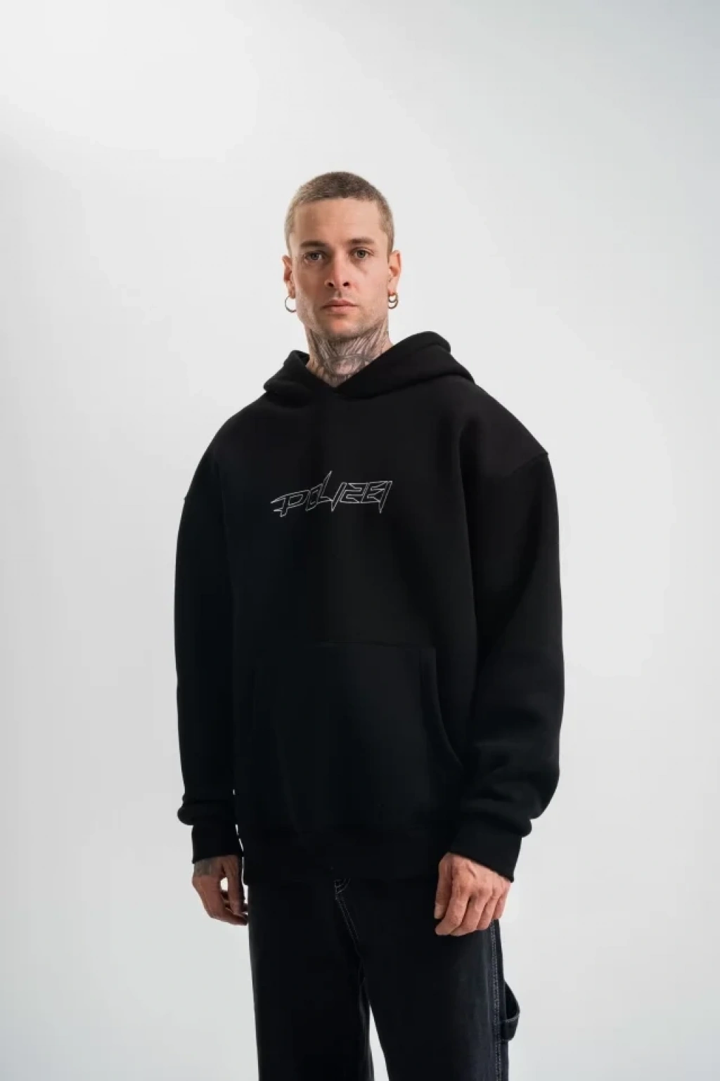 Unisex Üç İplik Kapşonlu Nakışlı SweatShirt - Siyah