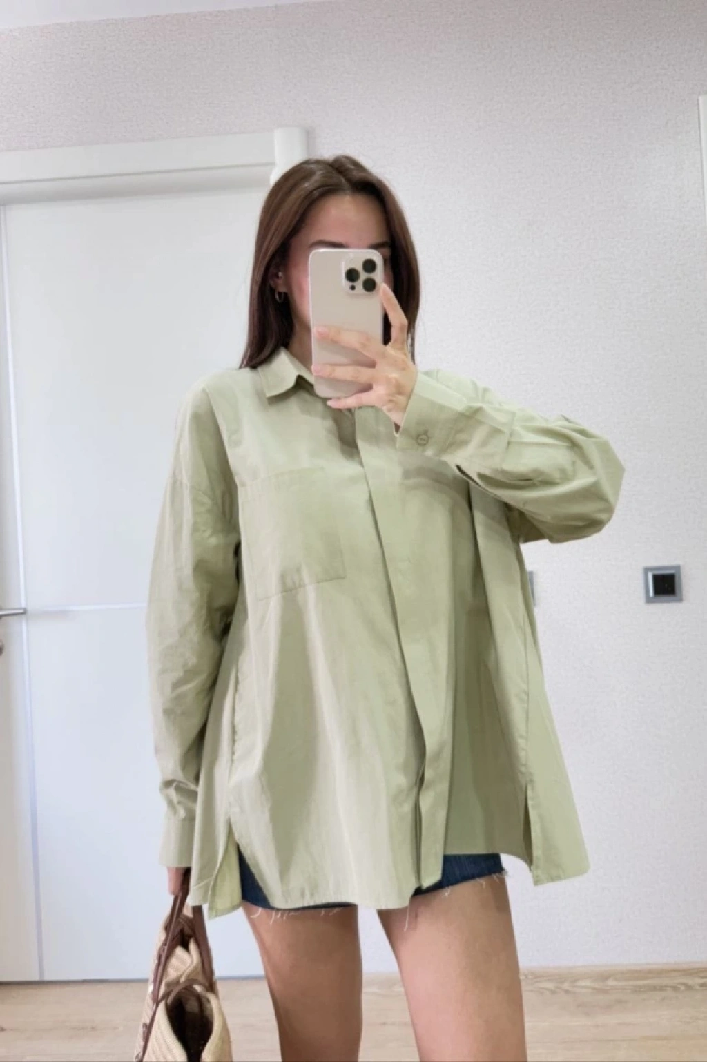 Yakalı Yandan Yırtmaçlı Gömlek - Yeşil