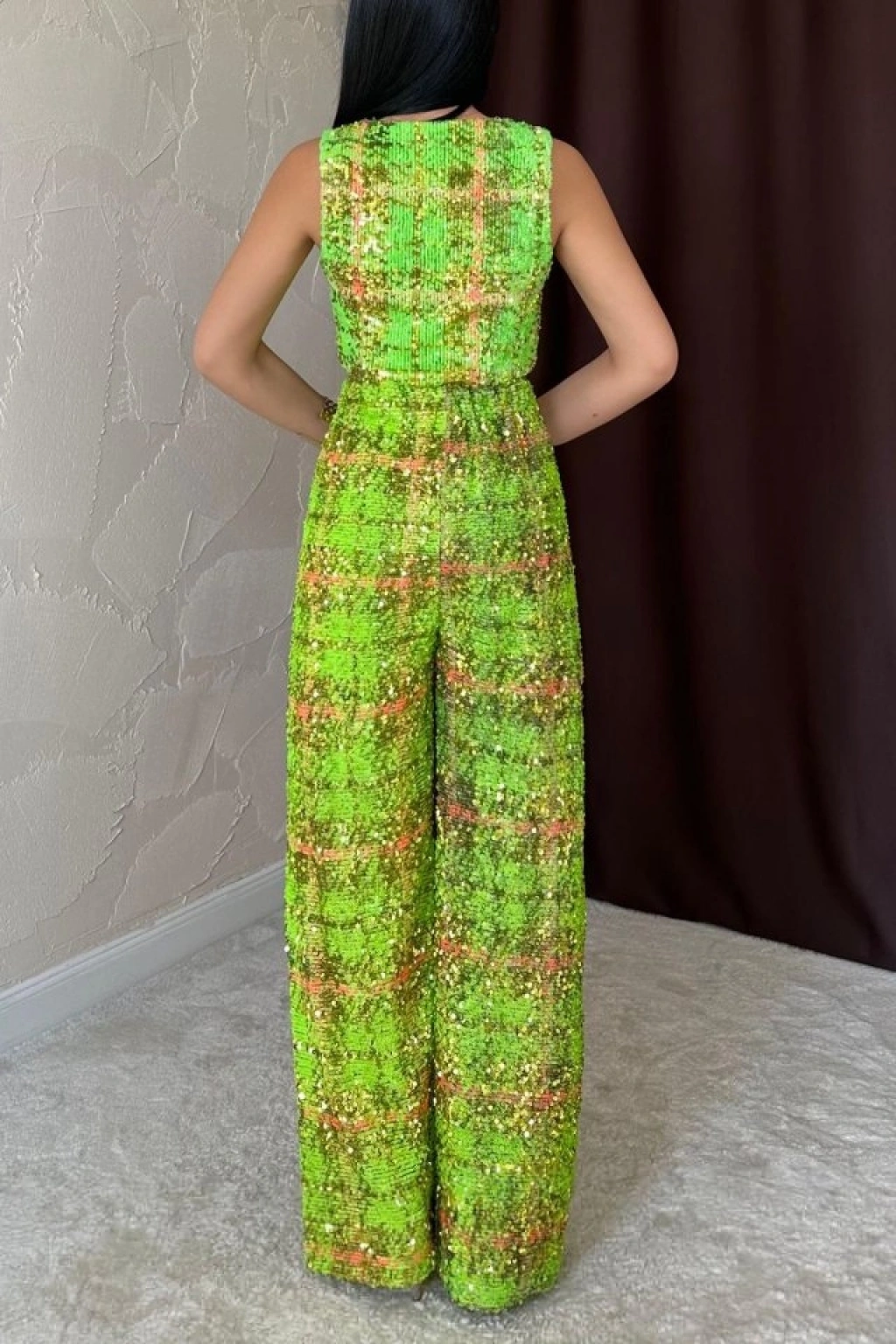 Yeşil Pullu Yelek Ve Pantolon Takım