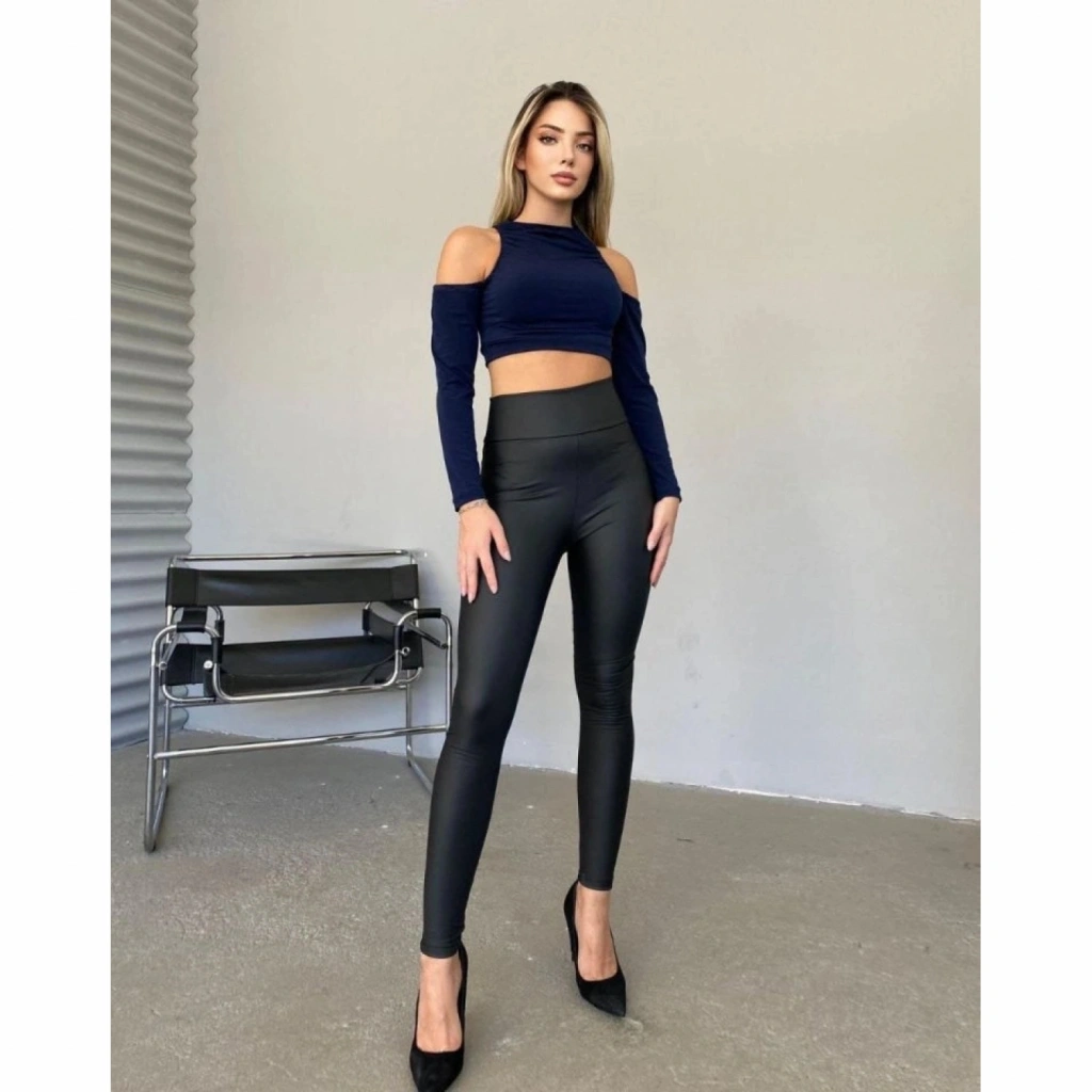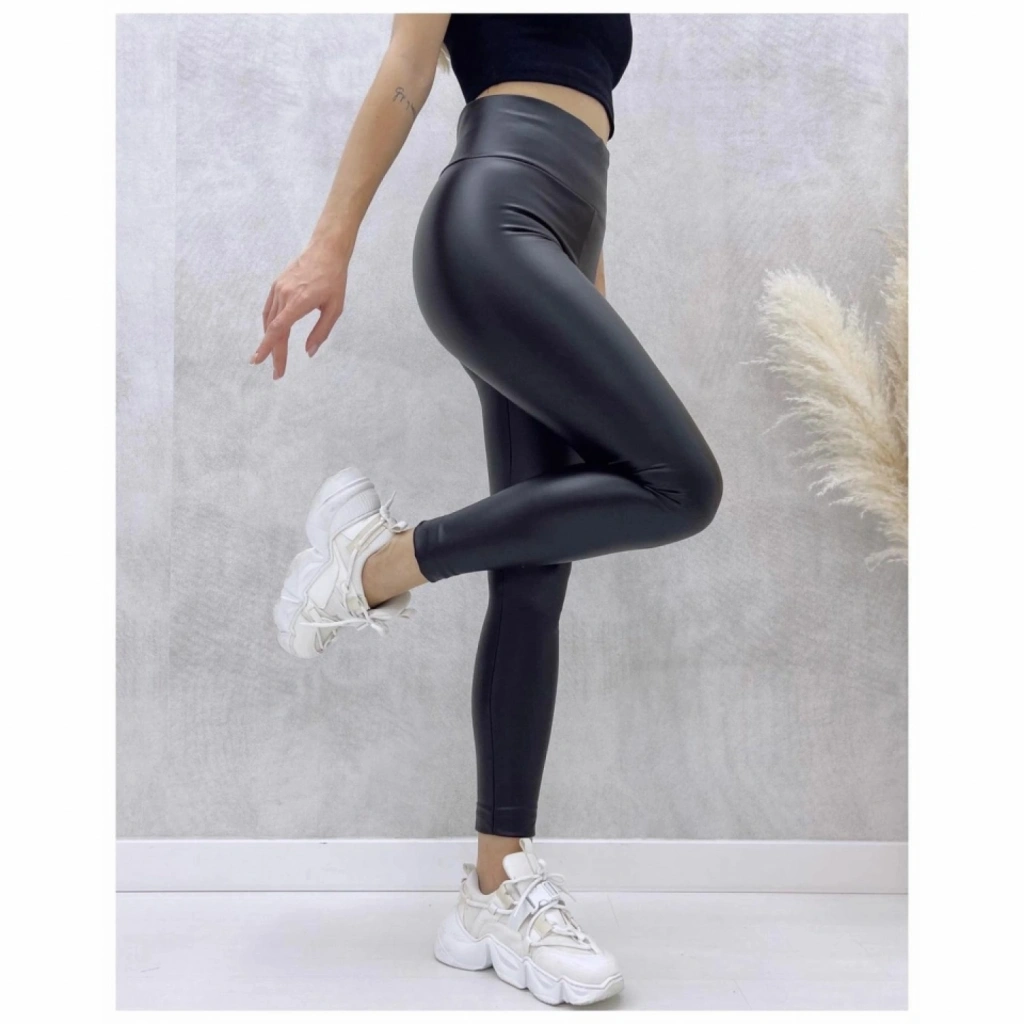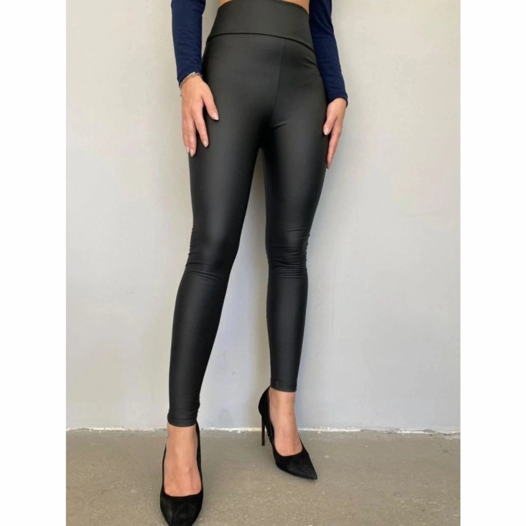 Yüksek Bel Toparlayıcı İçi Şardonlu Deri Tayt
