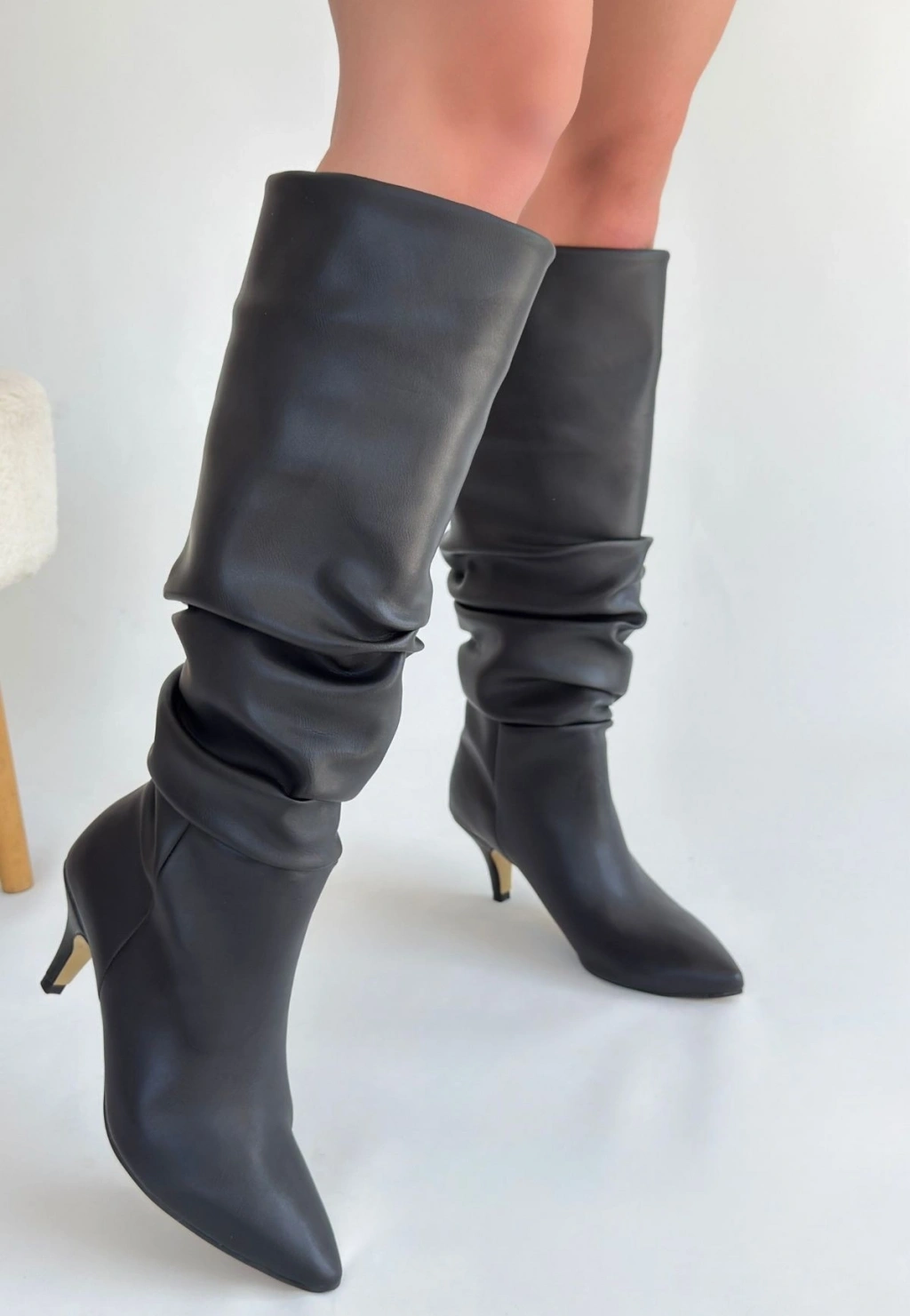 Detay : Topuklu Diz Altı Körüklü Çizme