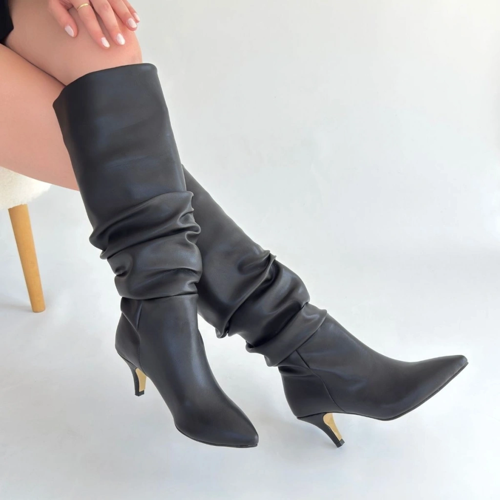 Zelya Siyah Cilt Topuklu Çizme